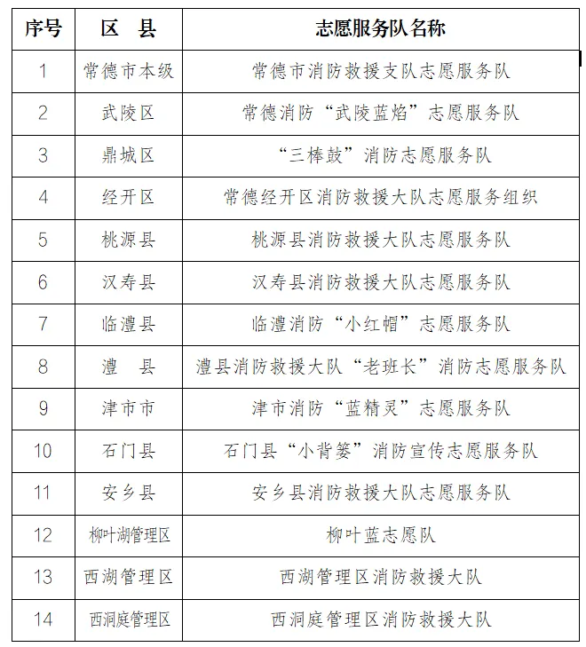 也可以搜索您所在地区的消防志愿服务队申请加入。各地消防志愿服务队名称可参考下面表格。