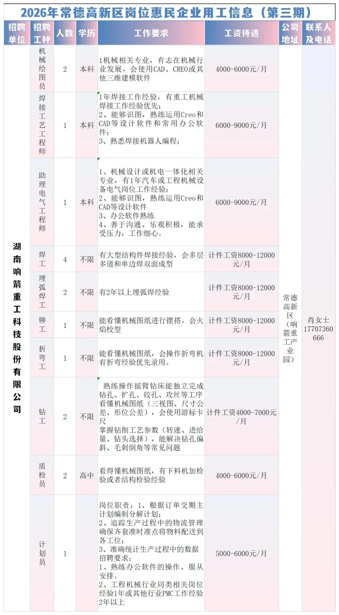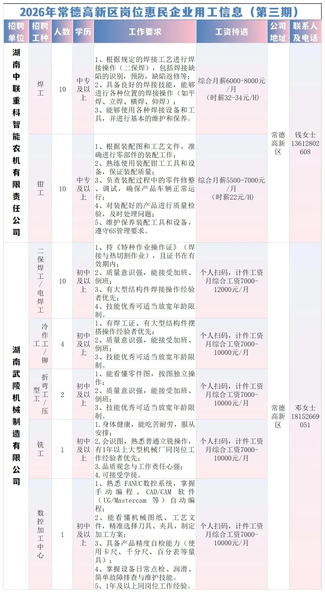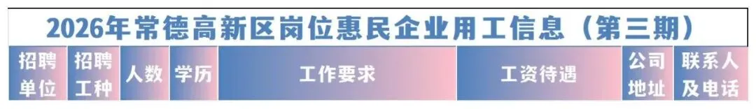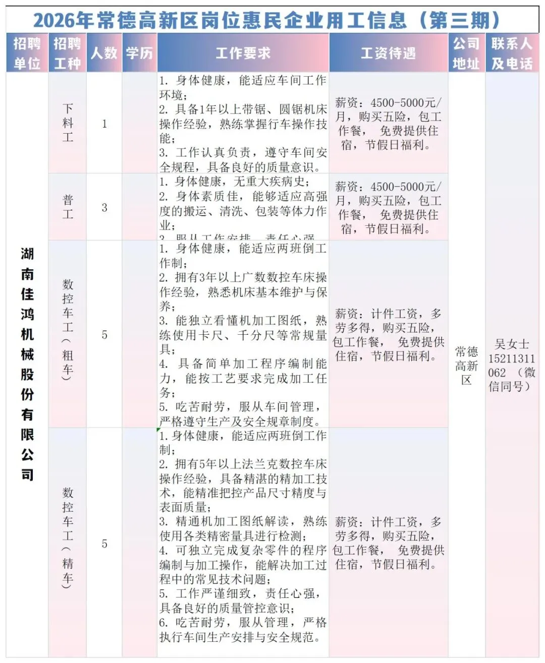 >2026年常德高新区岗位惠民企业用工信息(第三期)
