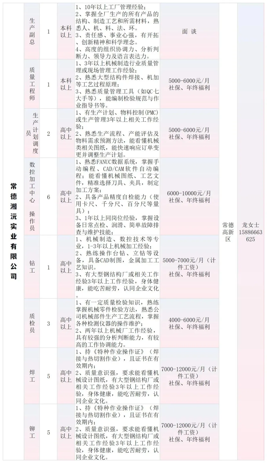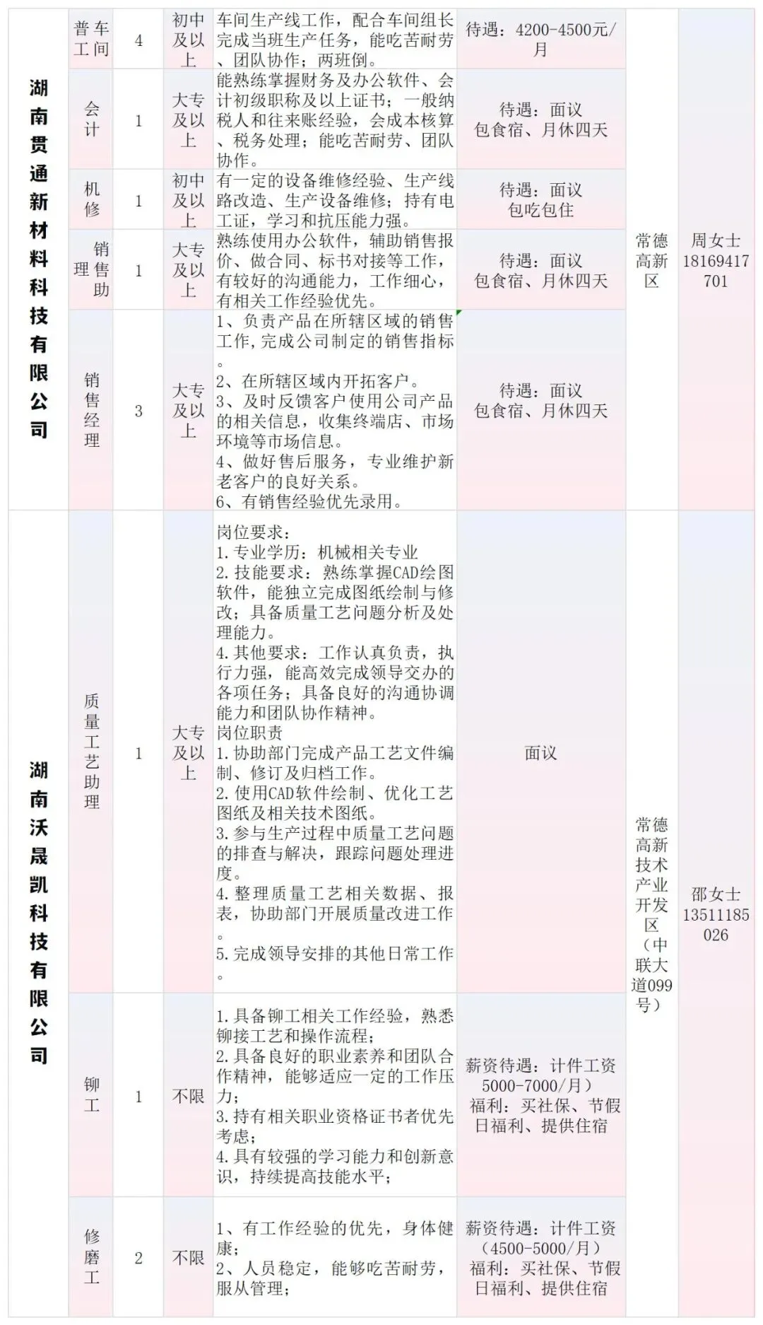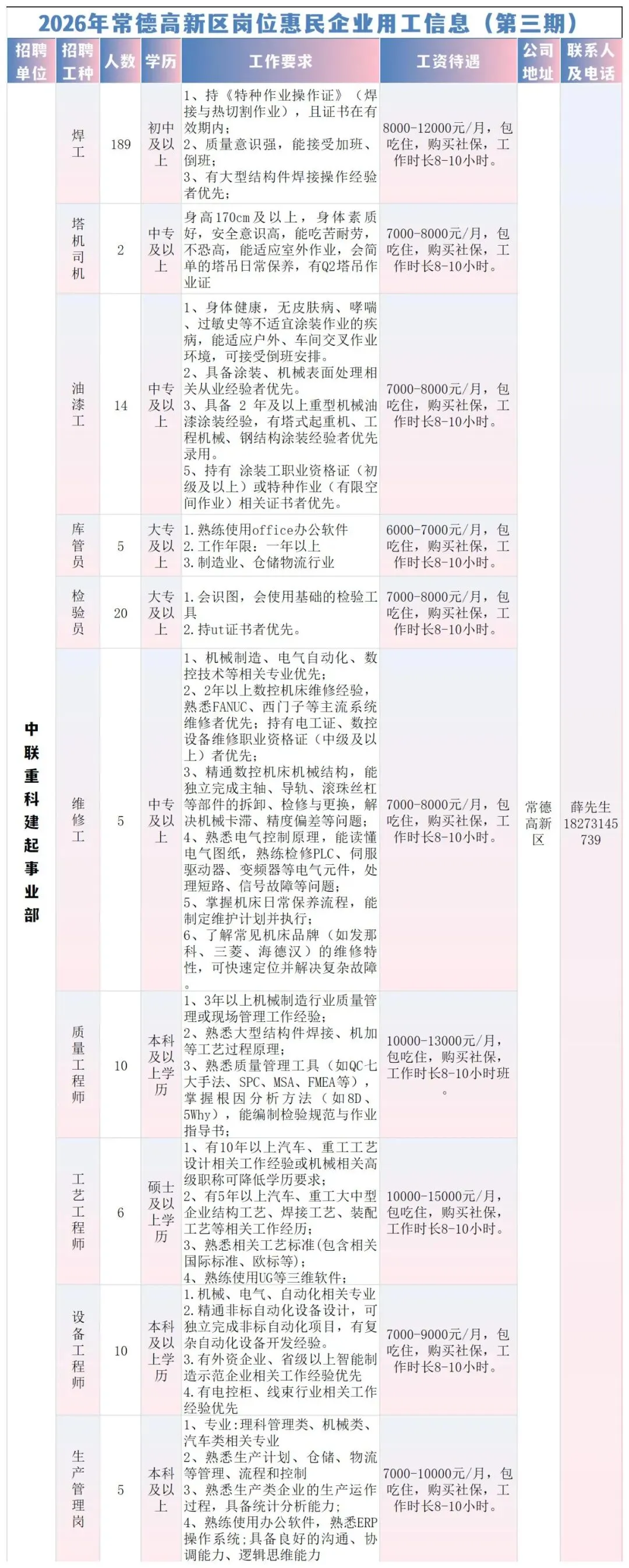 >2026年常德高新区岗位惠民企业用工信息(第三期)