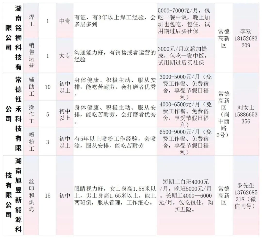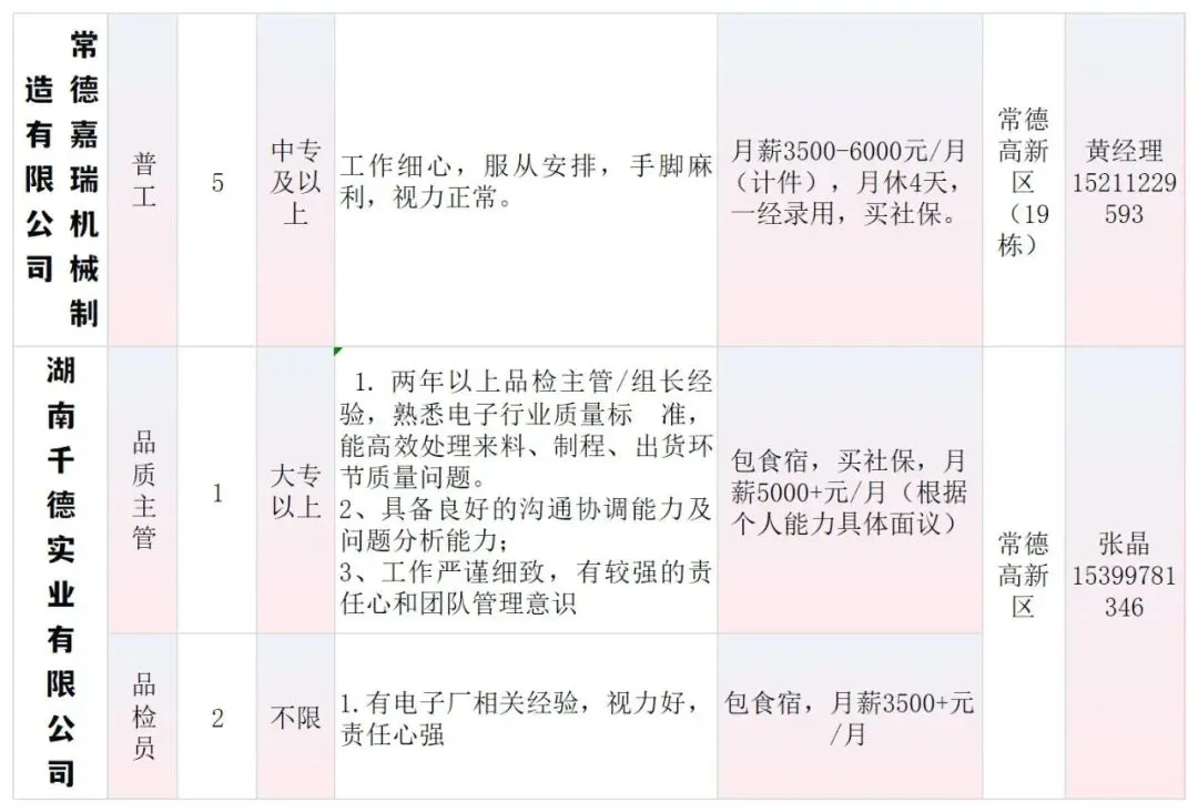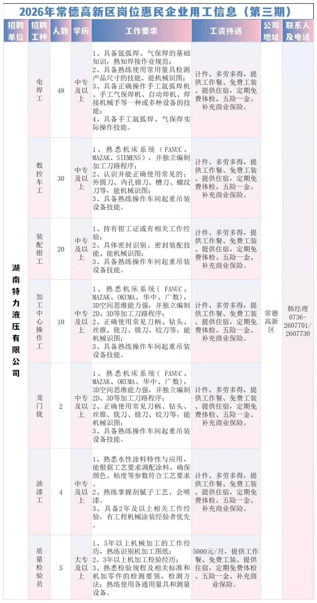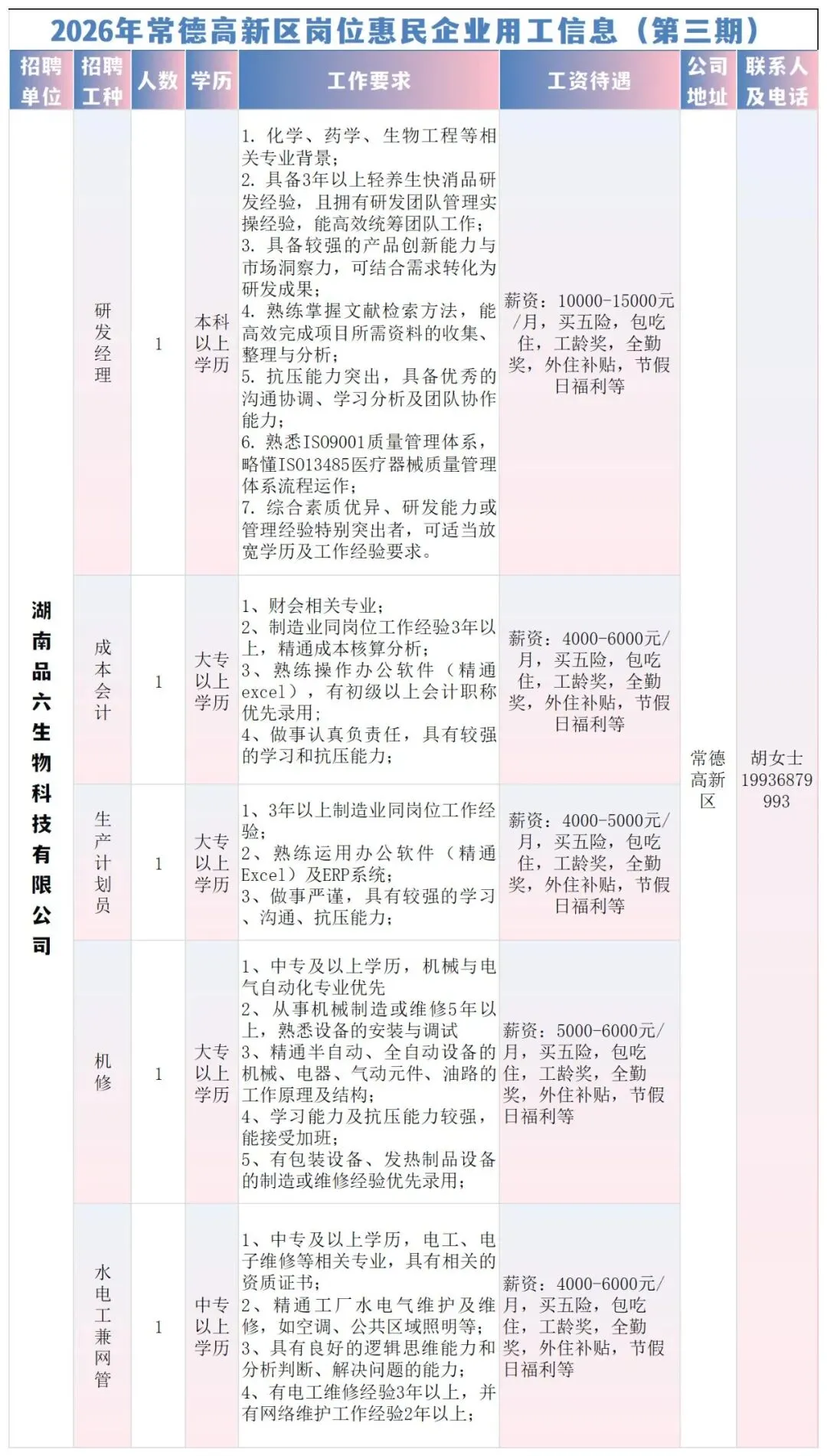 2026年常德高新区岗位惠民企业用工信息(第三期)