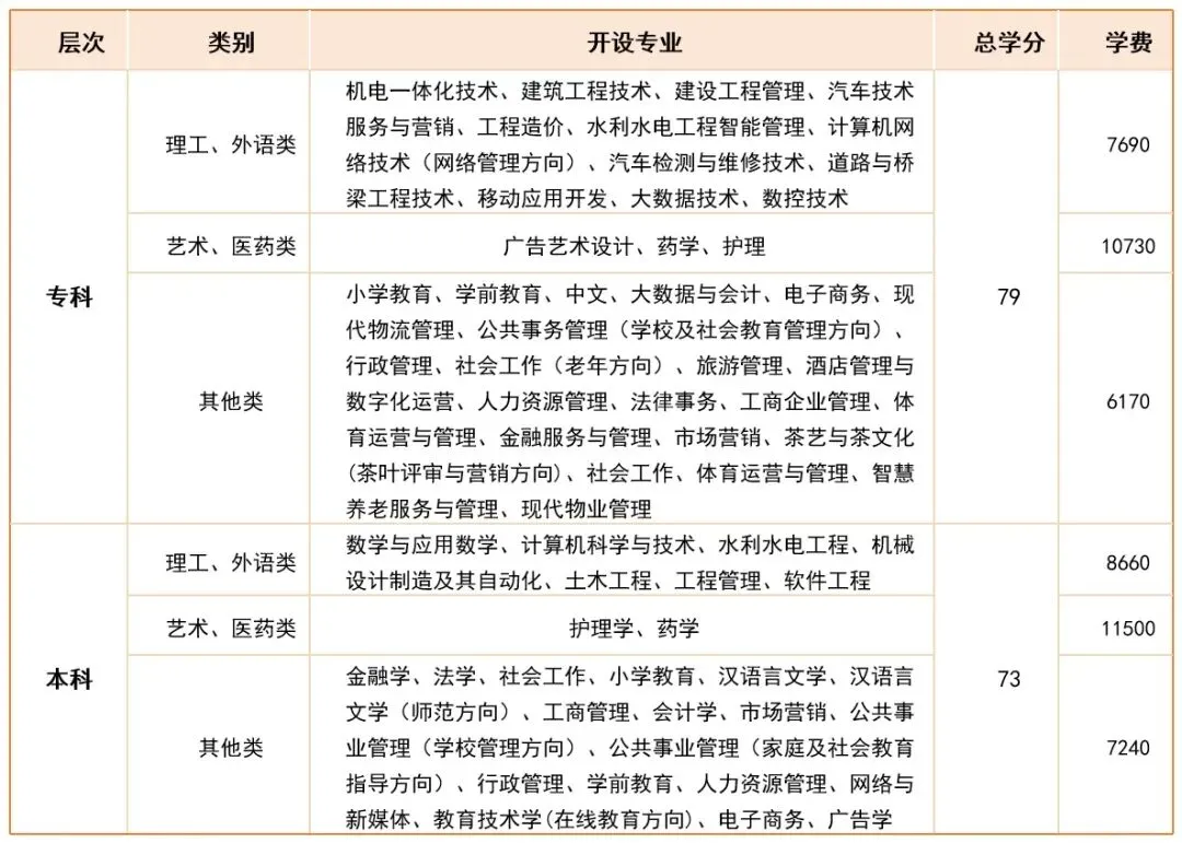 专业设置及收费标准