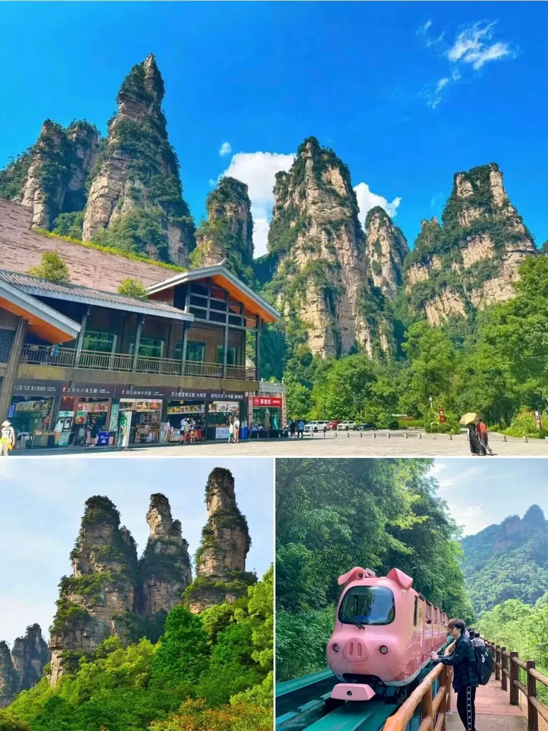 D2|袁家界-杨家界-天子山 宿张家界- 早上|早餐后咱们集体继续前往【武陵源国家森林公园】,进景区登上摆渡车我们先来到【袁家界景区】。体力较差的也可以选择乘坐百龙电梯到袁家界,但可能排队时间较长,我们建议大家尽量徒步上山,享受其中的乐趣哦。- 上午|我们前往观看【袁家界】《阿凡达》外景拍摄地 “哈利路亚山”(又名乾坤柱)探寻阿凡达中的群山漂浮、星罗棋布的玄幻莫测世界;看【天下第一桥】【迷魂台】【乾坤柱】【神龟问天】【五女拜寿】等代表性著名景点。- 中午|坐摆渡车前往【杨家界景区】这里汇聚着30多座形态各异的峰林,仿佛一支神兵天将,藏于深山密林之中,下面是万丈深渊的幽谷,幽谷上有梯形良田,登上“田园”,清风拂袖,云雾缠身,如临仙境。- 下午|摆渡车前往最后一站【天子山景区】游览【仙女献花】【御笔峰】【贺龙公园】【西海观景台】等,海拔1262米的天子山素有“峰林之王”之称。体力好的小伙伴可以选择从天子山途径【南天门】徒步下山,约1.5小时到达环保车站。也可以自行选择乘坐天子山索道下山返回到早上出发点(费用自理)今天的徒步路程较长,会比较辛苦, D3| 十里画廊-金鞭溪-芙蓉寨 宿芙蓉寨