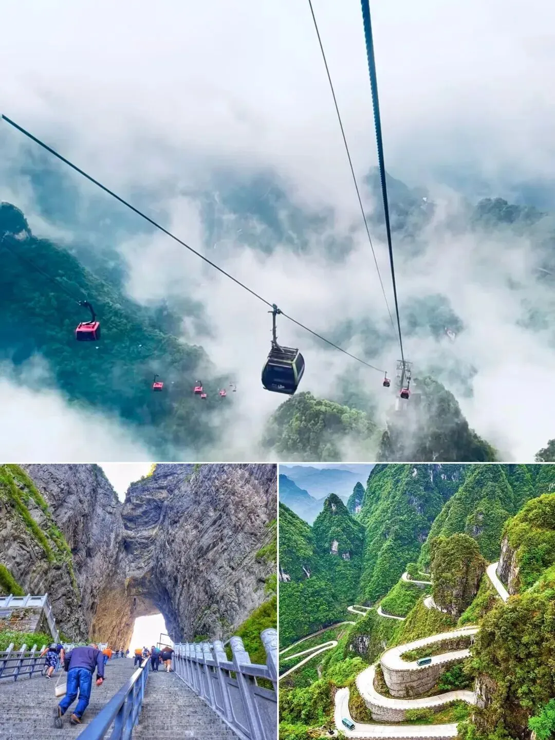中国第一个国家级森林公园, 里面有免费环保车坐一路美景如画张家界森林公园天门山有世界最长高山索道公路99道弯, 通天大道,全球首条穿山电梯游览“阿凡达悬浮山”袁家界峰墙之王杨家界、十里画廊芙蓉镇、凤凰古城看夜景