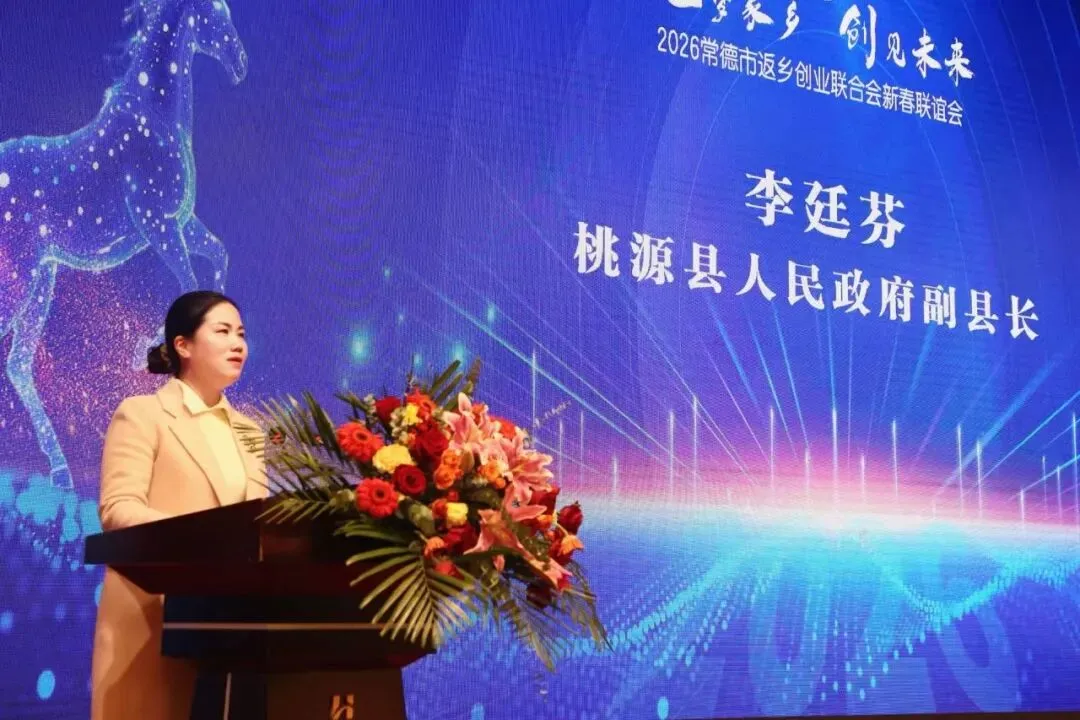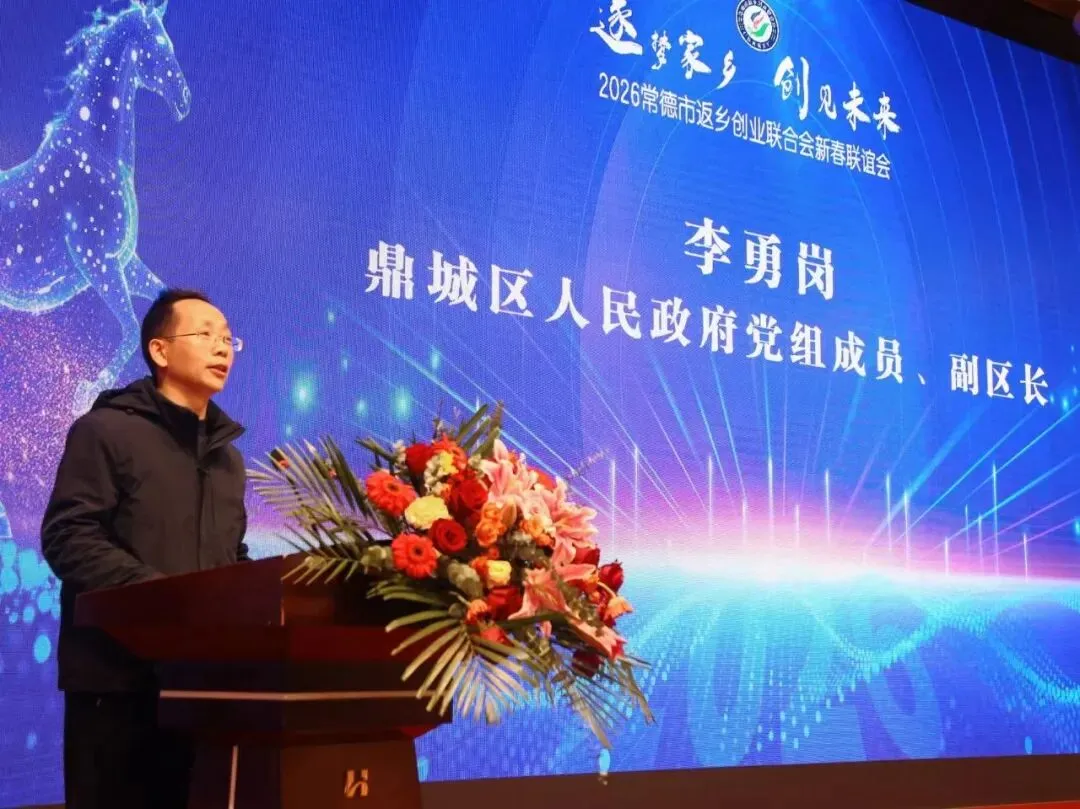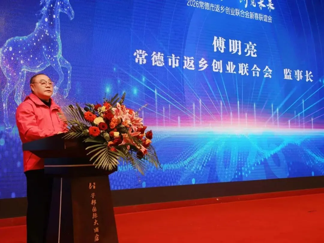 市返乡创业联合会监事长傅明亮致辞表示,返乡创业者深耕常德故土,以实干赋能产业升级、助力乡村振兴,用奋斗诠释桑梓情怀、彰显创业担当。联合会以乡情为纽带,搭建政企桥梁,筑牢服务平台。新的一年,愿与广大会员抢抓发展机遇,共克创业难关,同心聚力为常德高质量发展注入返乡创业强劲动能。