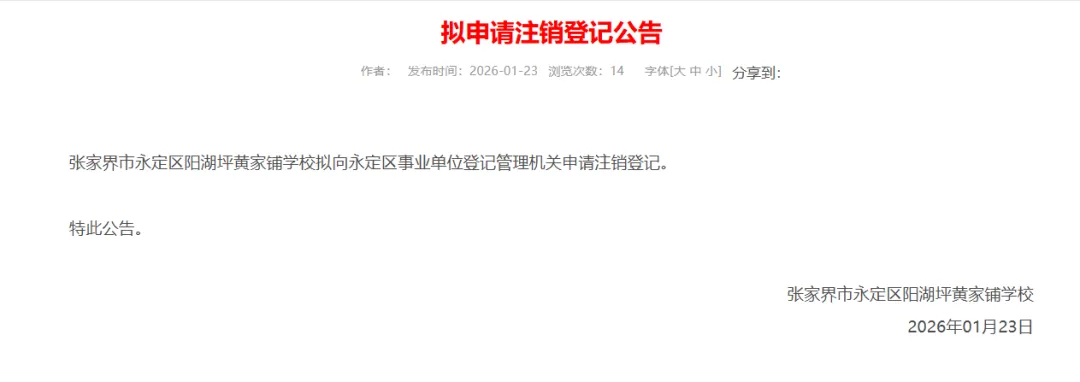 >张家界一学校拟申请注销!