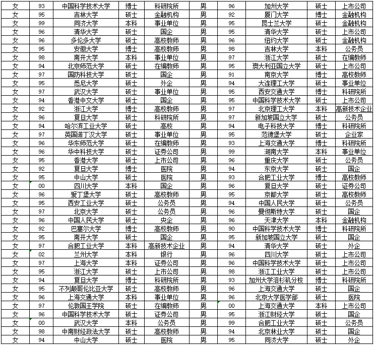 每位参与活动嘉宾报名时,都会在平台进行实名认证、学历认证。本硕博占95%以上,更有全场嘉宾均为硕博学历的场次喔~嘉宾多有稳定工作,高知高收入精英居多!