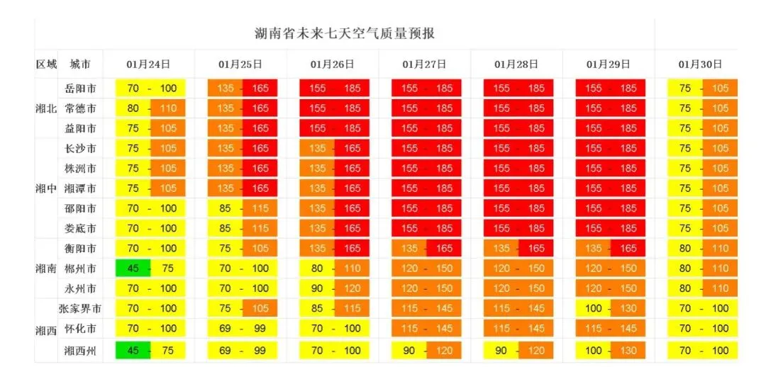 【湖南重污染天气预警】1月25日至29日,湖南预计会出现长时间、大范围的中度污染,局部可能短时达到重度污染。长沙已经从昨晚启动重污染天气橙色预警和应急响应。大家要注意减少外出,出门记得戴口罩。