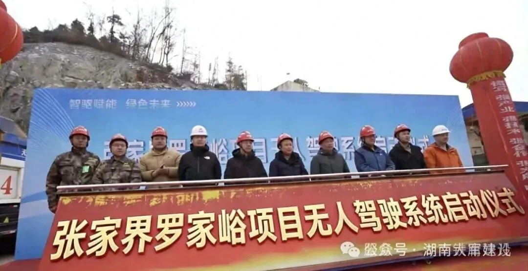 1月22日,大雪初霁,“智驱赋能 绿色未来”张家界罗家峪项目无人驾驶系统启动仪式在湖南铁军项目部举行。随着鎏金砂杆推动,12台无人驾驶纯电矿卡驶出,标志着湖南省首个无人驾驶矿卡运输露天矿山项目正式投运。市、区相关部门领导及合作方代表莅临见证。湖南铁军总经理陈学立致辞,以试运行2750小时、运输矿石38.3万吨的实绩,展现项目成效,并表示将以此打造智慧矿山标杆。合作方代表均表达协同共建意愿。嘉宾观摩了矿卡运行及调度中心可视化平台,对其智能化表现高度认可。该系统可实现24小时作业,能耗与人力成本分别降低70%-80%、80%,破解行业痛点,为湖南矿山智能化、绿色化转型提供可复制方案。