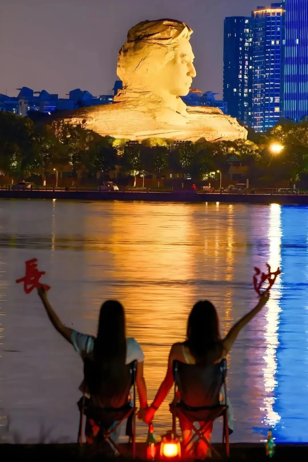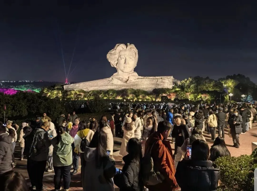 你站在IFS的人头雕塑旁,脚下灯光亮得像银河掉落。远处分不清是夜色还是烟气,城市像一首正在被演奏的歌,热闹得毫不敷衍。长沙的夜,是会让你突然觉得——活着这件事,其实可以很热血的。