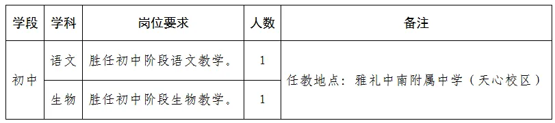 初中语文教师若干名、初中历史教师若干名、初中地理教师若干名。