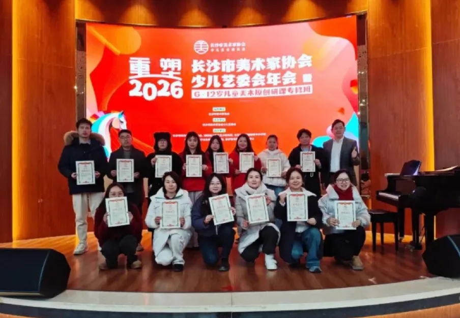 为切实推动少儿校外美术教育从“同质化教学”向“差异化、系统化、高品质”转型,助力一线教师与机构构建可持续发展核心竞争力,由长沙市美协指导,长沙市美协少儿艺术委员会主办、协会单位精心筹备的“重塑2026”长沙市美术家协会少儿艺委会年会暨6-12岁儿童美术原创研课专修班,于2026年1月22日至23日成功举办并圆满落幕。