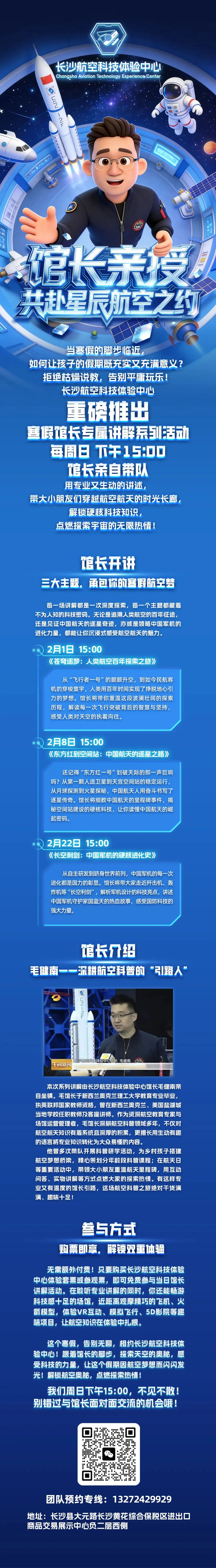 寒假限定!长沙航空科技体验中心馆长亲授,共赴星辰航空之约