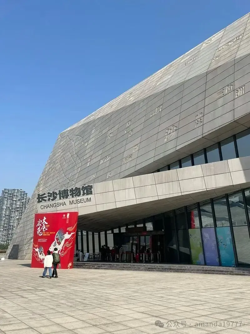 参观长沙市博物馆建筑层高5层,总面积2.4万平方米,展示面积9000余平米。长沙市博物馆外观形似一颗“顽石”,外墙是一幅二十世纪初长沙开埠初期的地图,建筑的立面设计还采用了竹简的意象。白沙井、坡子街、橘子洲等长沙城市标识采用老宋体的字,标示了十八处长沙人所熟悉的地名,外墙上还装饰着湘江缓缓绕墙流淌,馆内展品展现长沙的古代史与近代史,述说长沙人自己的故事