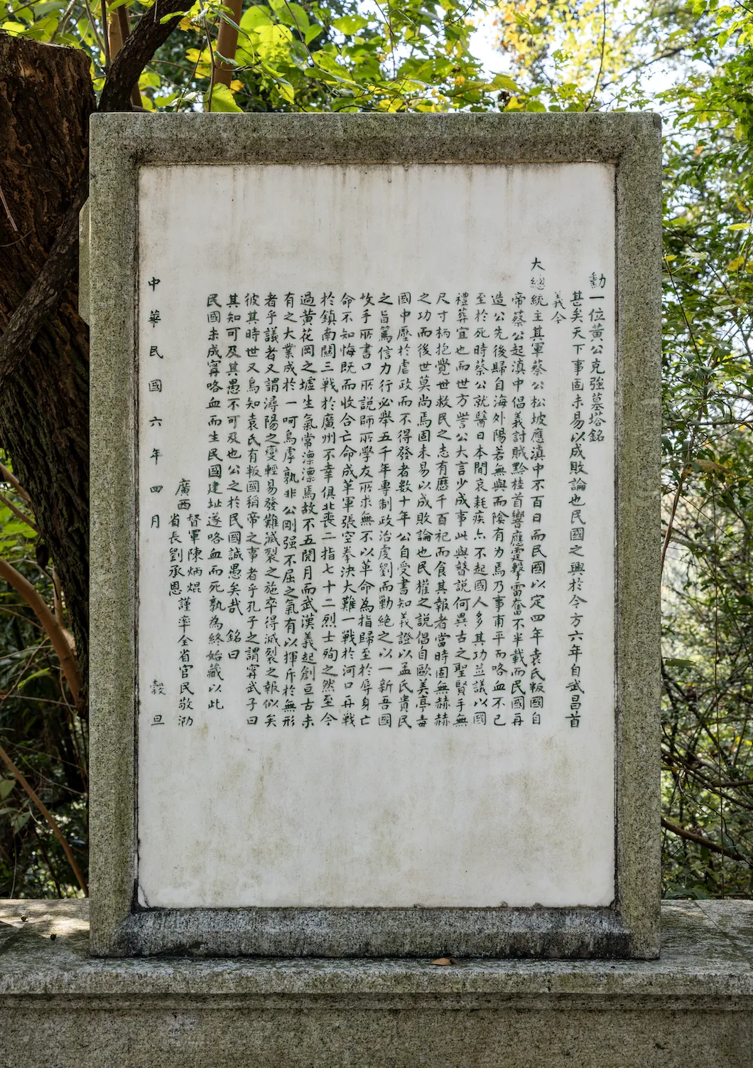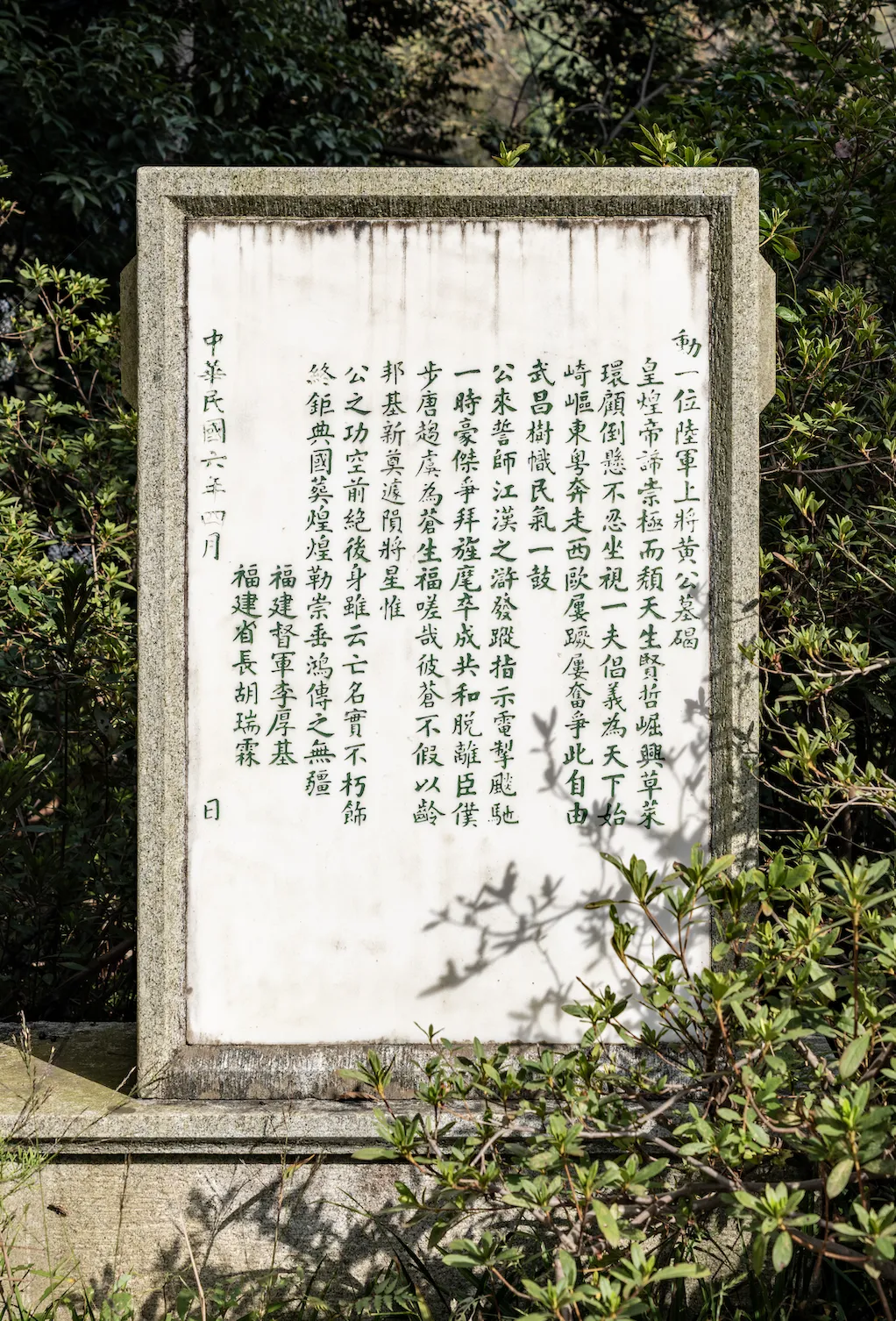 福建督军李厚基、福建省长胡瑞霖《勋一位陆军上将黄公墓碣》广西督军陈炳焜、广西省长刘承恩《勋一位黄公克强墓塔铭》湖北督军兼署省长王占元《上将黄公兴纪念》湖南省长兼署督军谭延闿《呜呼此黄克强先生之墓后之来者尚师其志事》新疆省长兼署督军杨增新《黄克强先生纪念碑铭》
