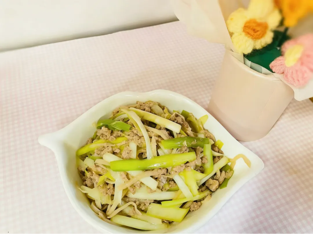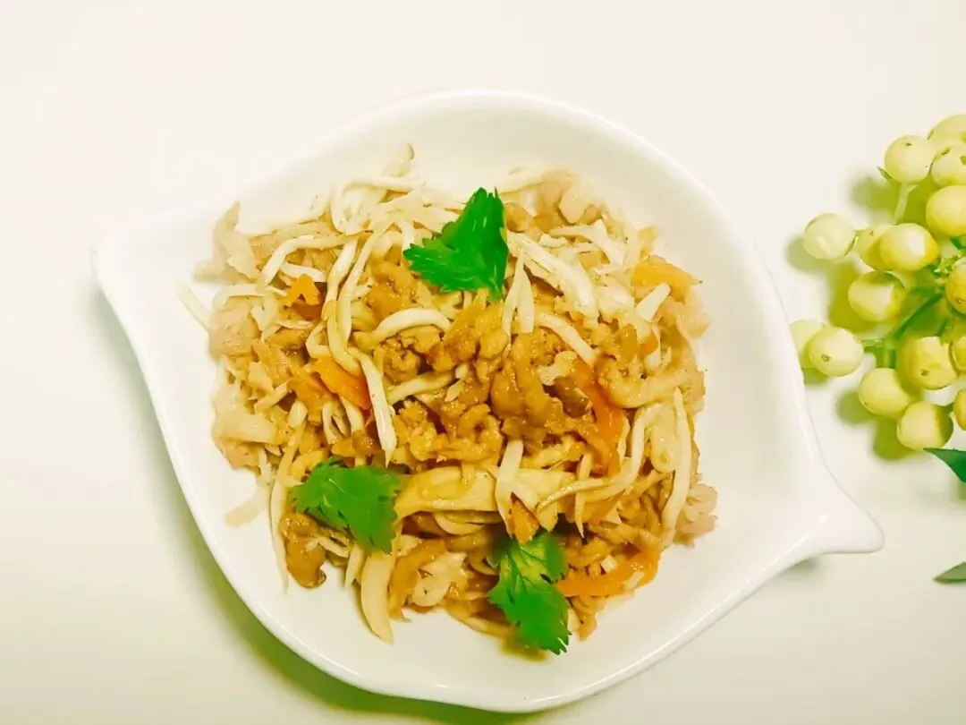 小炒仔鸡、肉末烩杏鲍菇、清炒白菜苔、筒子骨山药汤、香米饭