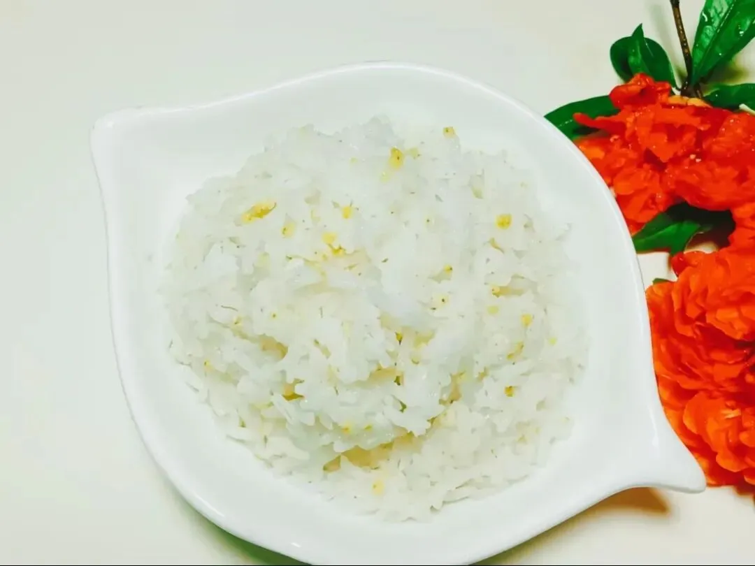 白灼基围虾、肉炒花菜、清炒五号白、筒子骨莲藕汤、香米饭