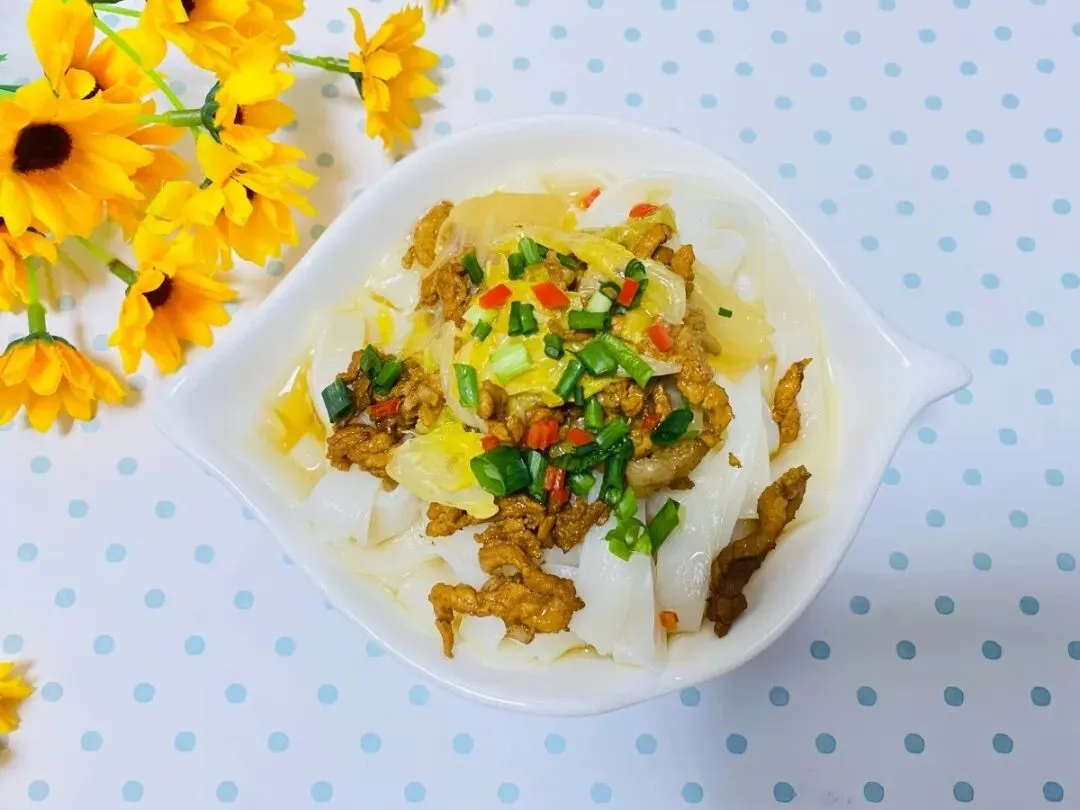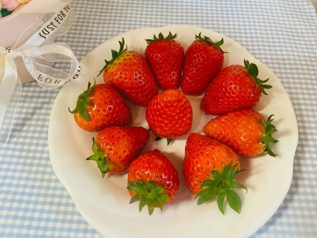 肉丝娃娃菜米面、鹌鹑蛋、草莓