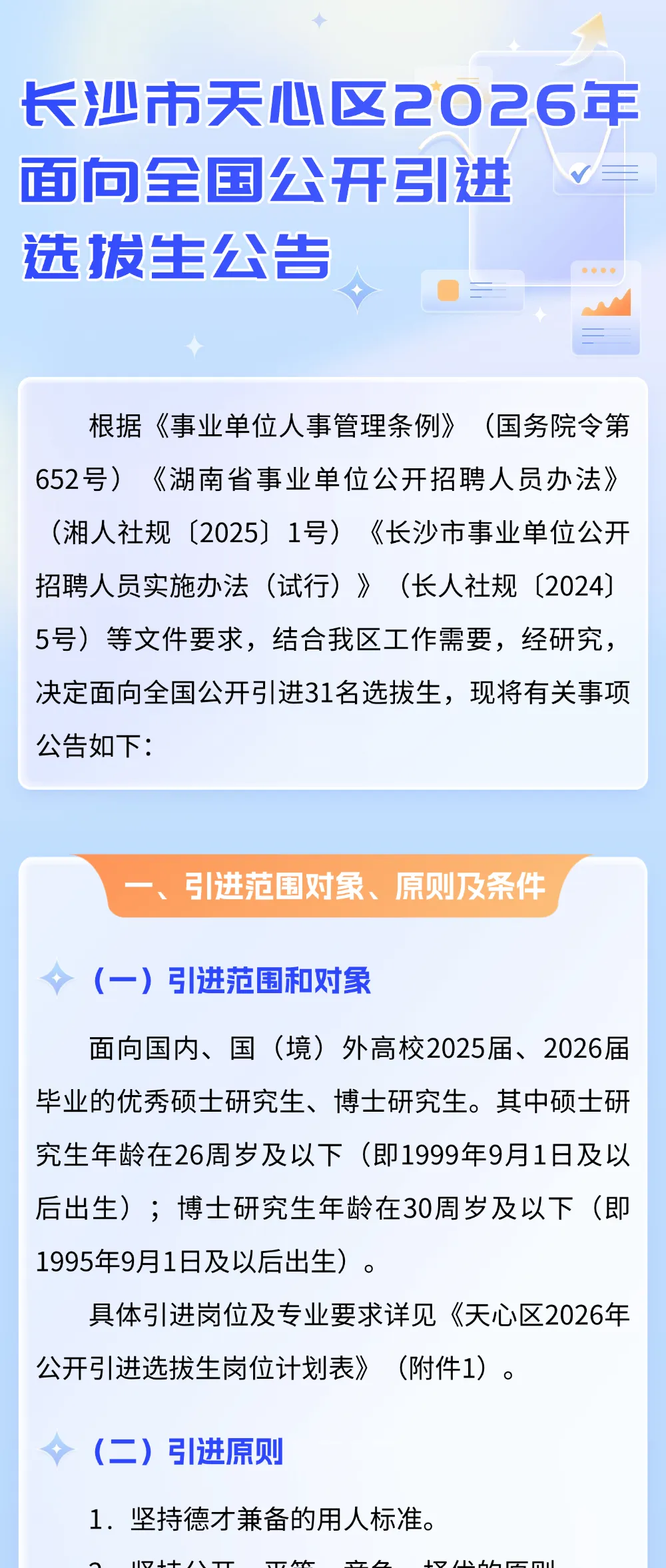 >政府基层 | 长沙市天心区2026年面向全国公开引进选拔生公告
