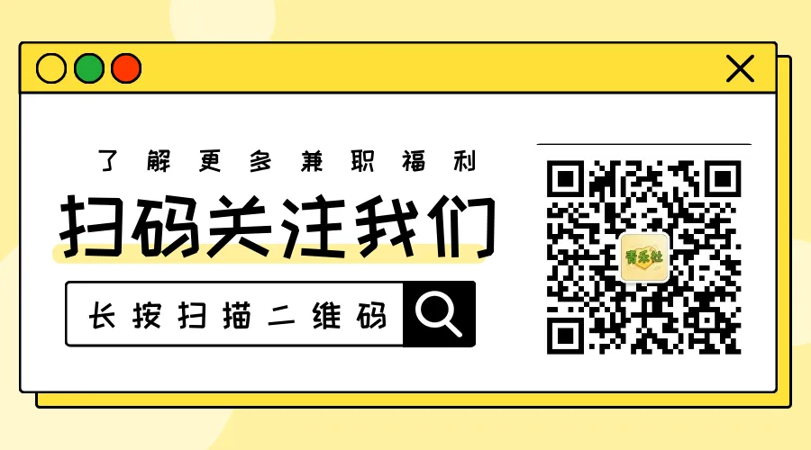 公众号的兼职都是精心挑选出来的优质兼职1、淘宝亚马逊租售,试药,证券话务员,利用个人信息注册东西,以直播为名需要代收款等非正常兼职都不建议大家做2、以下发布信息若有不实,欢迎随时在后台留言向小编反映!切记:本平台岗位不收取费用,要收费的需谨慎!