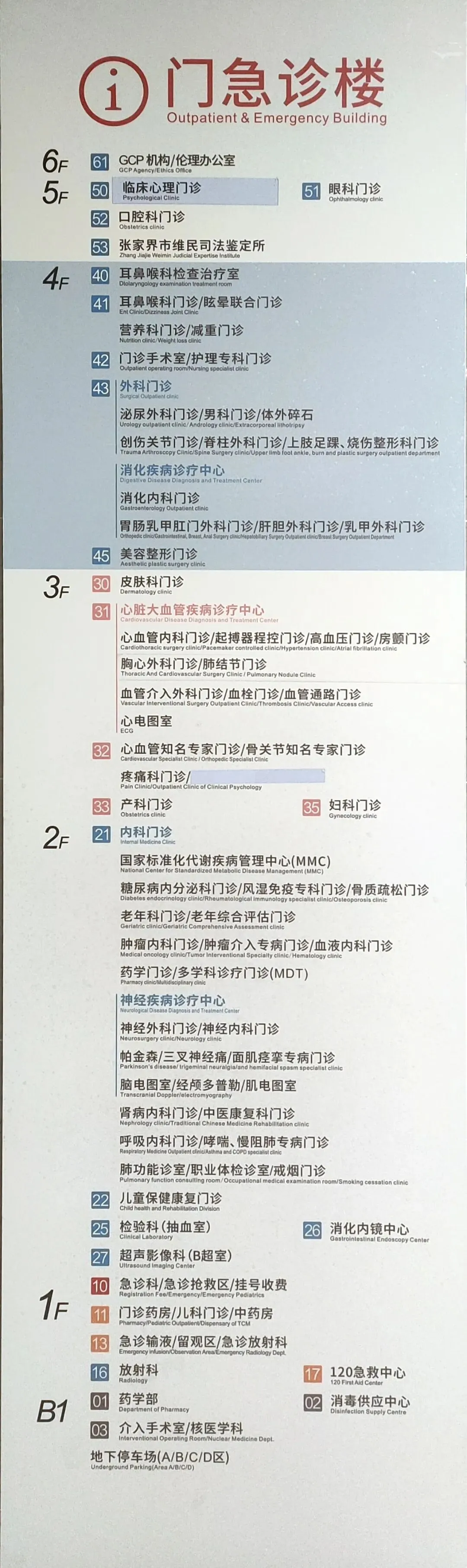 >张家界市人民医院沙地院区门急诊楼导向牌