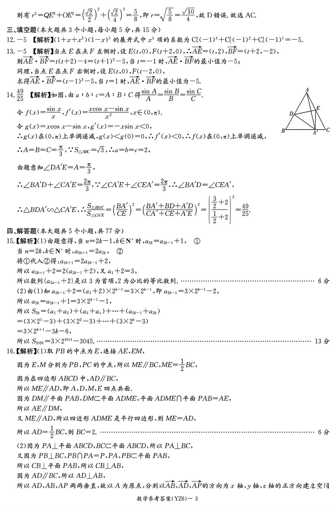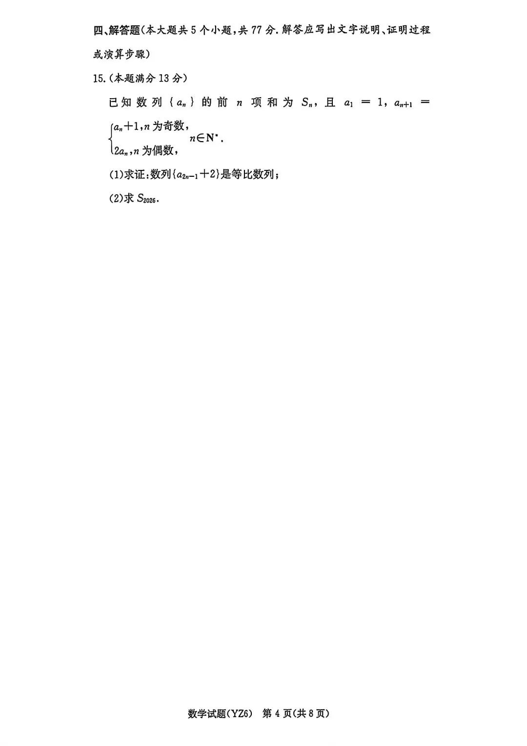 >长沙市一中2026届高三1月月考(六)数学试题