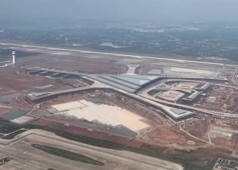 长沙黄花国际机场T3航站楼是湖南机场改扩建工程的核心项目,被誉为 "长沙之星"。它是国内交通接驳方式最多、换乘效率最高的现代化立体综合交通枢纽之一。项目建筑面积约50-53.36万平方米,是 T1、T2 航站楼总和的 2 倍多。五指廊构型(五指向心),从空中俯瞰形似五角星 / 展翼凤凰。项目于2022年2月28日开工,预计2026年10-12月投运。根据@CADAS统计数据,长沙黄花国际机场2025年度旅客吞吐量约3025万人次,同比增速-3.1%,排名15位。