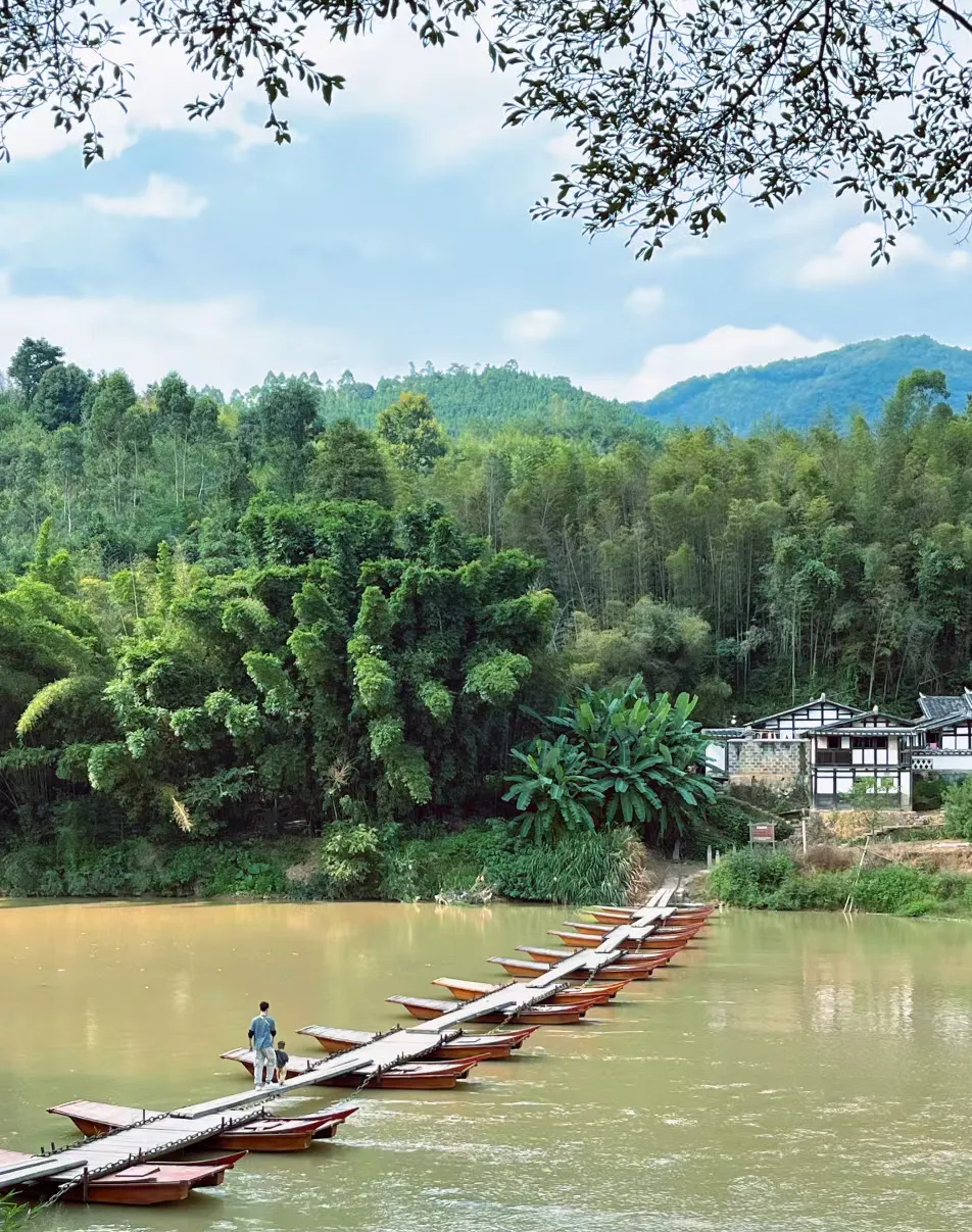 早餐后驱车前往永安。永安其实是被沙县小吃的名气掩盖了的另一个美食聚集地。这里的叉叉果、粿条、牛肉丸等小吃,完全不输沙县。我们先去一个拥有悠久历史,也是抗战时期就存在的酒楼品尝永安特色小吃,吃饱喝足以后再去古村落游玩。这里有着福建的抗战文化和浓厚的人文风光。土堡、浮桥、清代书院……木船停泊在碧绿如镜的河面,倒映着白墙灰瓦的轮廓,穿过石拱门恍入百年街巷,偶见大片油菜花田(您没看错,春节期间这边的油菜花正是盛花期),仿佛时光从未打扰这片秘境。