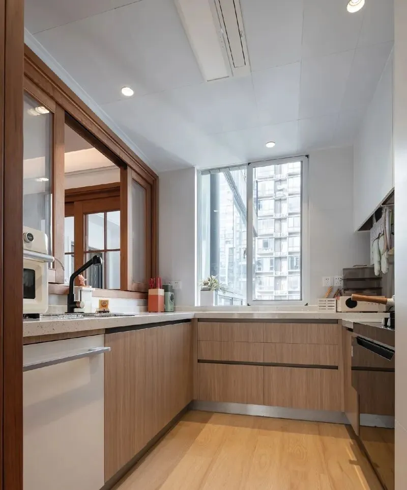 3 我发现他们做家务很轻松,基本没那么多要打扫的地方,地板上什么都不放,扫地机器人随便跑一圈就搞定,厨房台面每天都擦,锅碗刷完立马收进柜子,连桌面都保持空空的。