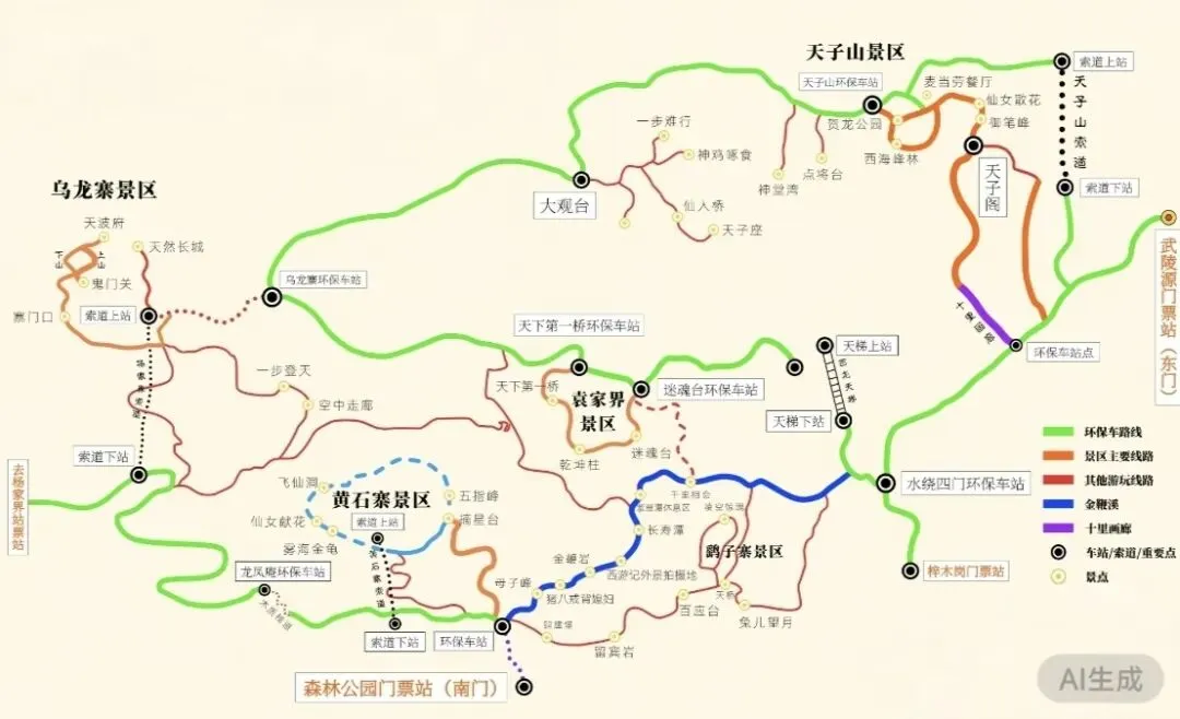 书接上回,在天子山乘坐一个小时左右的大巴来到了乌龙寨环保车站。步行前往天然长城