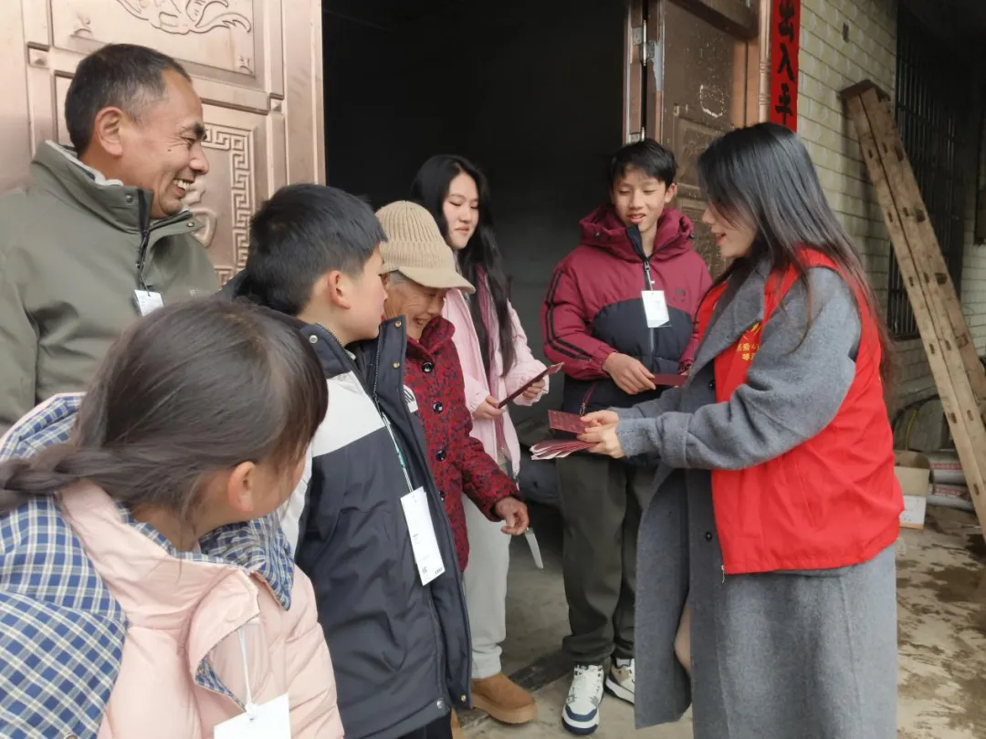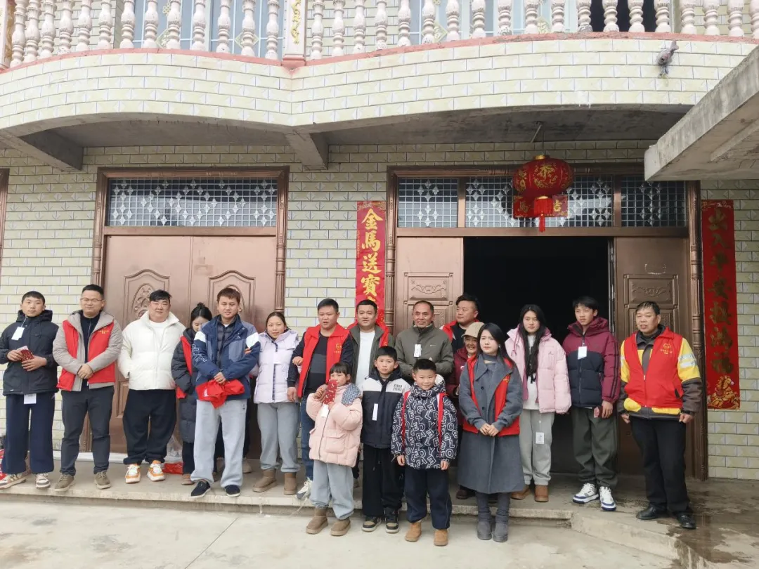 活动现场暖意融融,温情涌动。志愿者们身着统一的红色马甲,犹如一团团跃动的火焰,点亮了乡村的冬日。一抹“志愿红”,点缀新春喜庆。志愿者们架起木梯,细心地将大红灯笼悬挂在村民家的门楣上,又将满载祝福的春联工整地贴在门框两侧,瞬间烘托出浓浓的节日气氛。