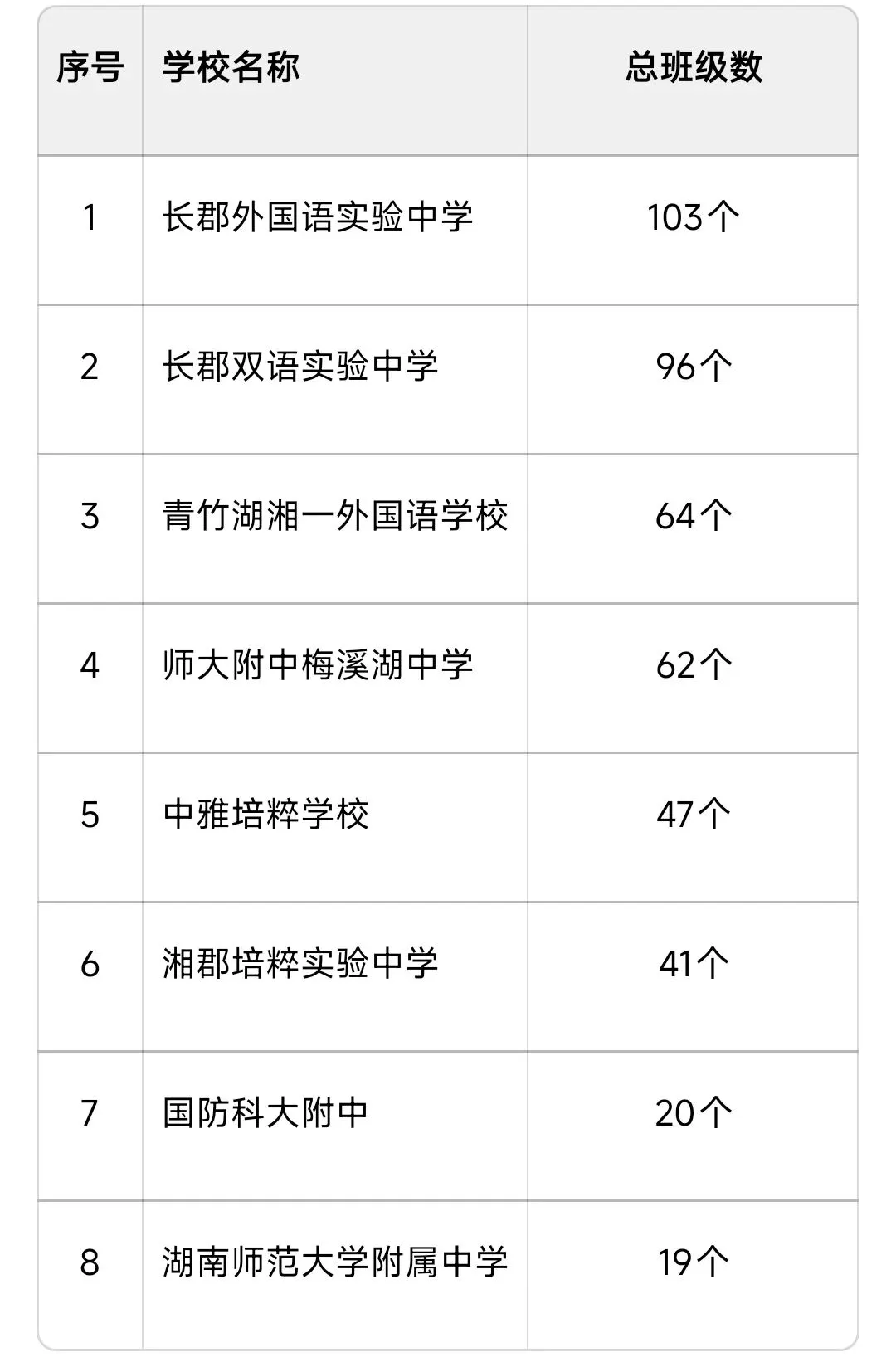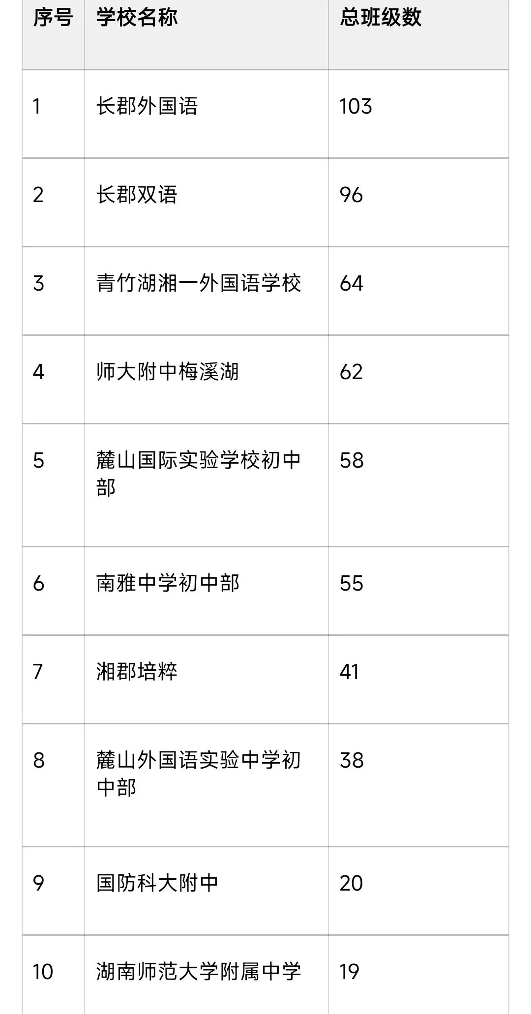 >长沙知名初中开设班级数