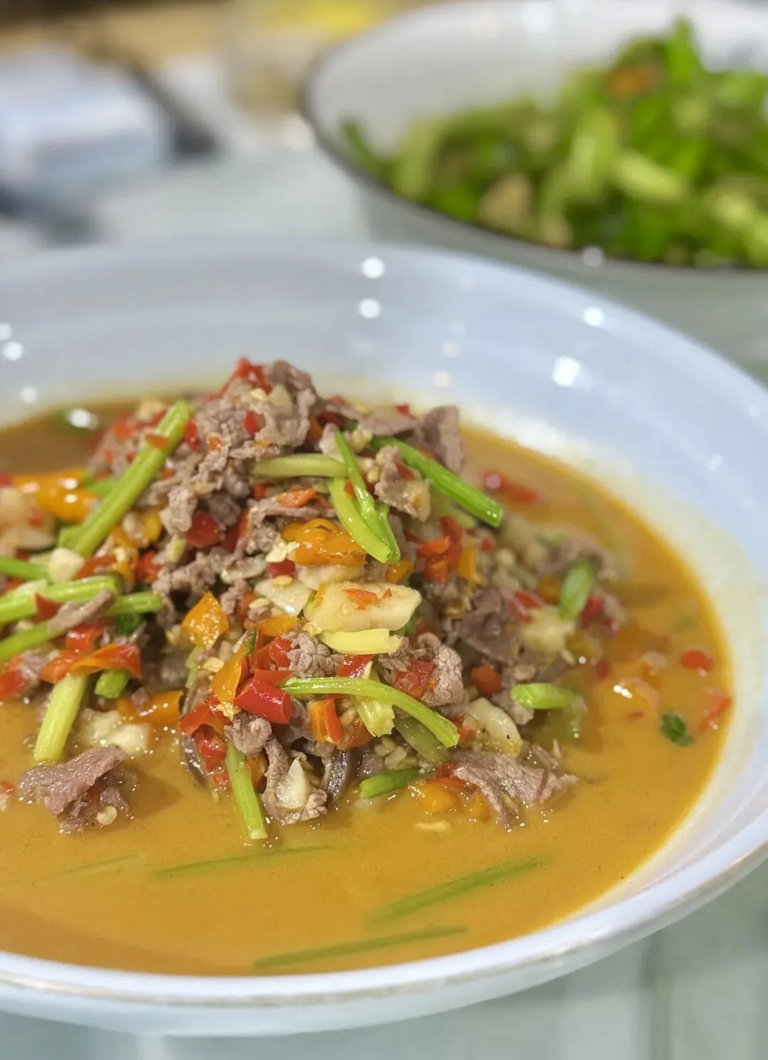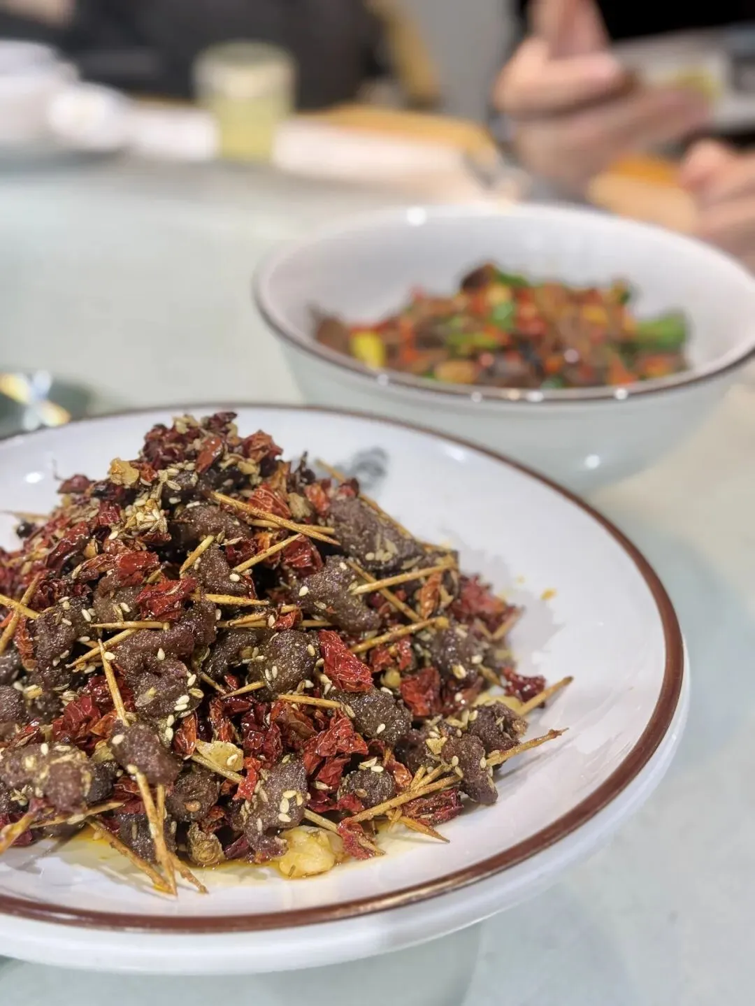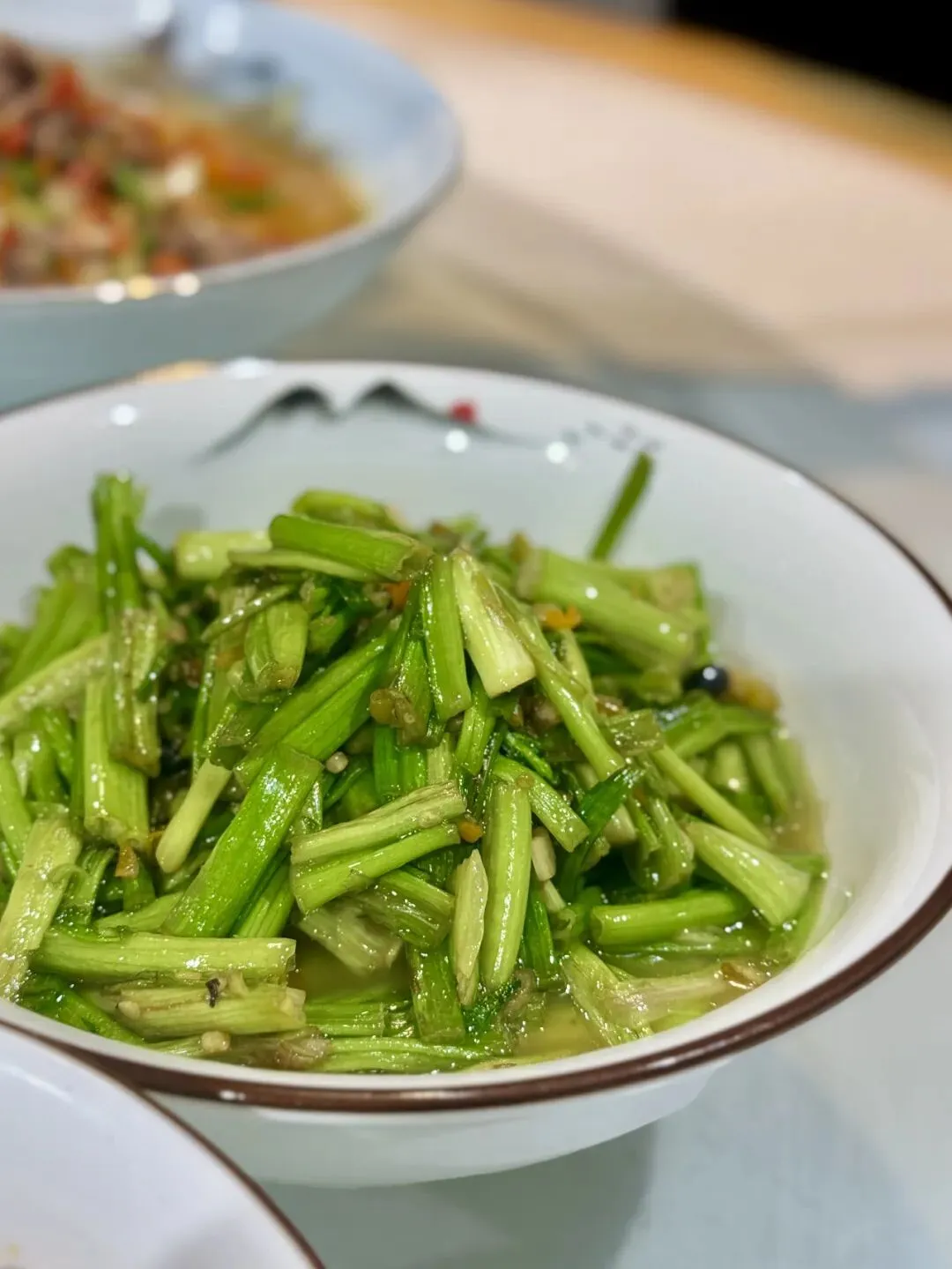 虽然不是水芹菜的季节,但是也十分的鲜嫩,只是水芹菜的冲味没有那么明显。用少许的豆豉和店家自制的坛子辣椒一同炒制,猪油香明显,酸辣开胃。