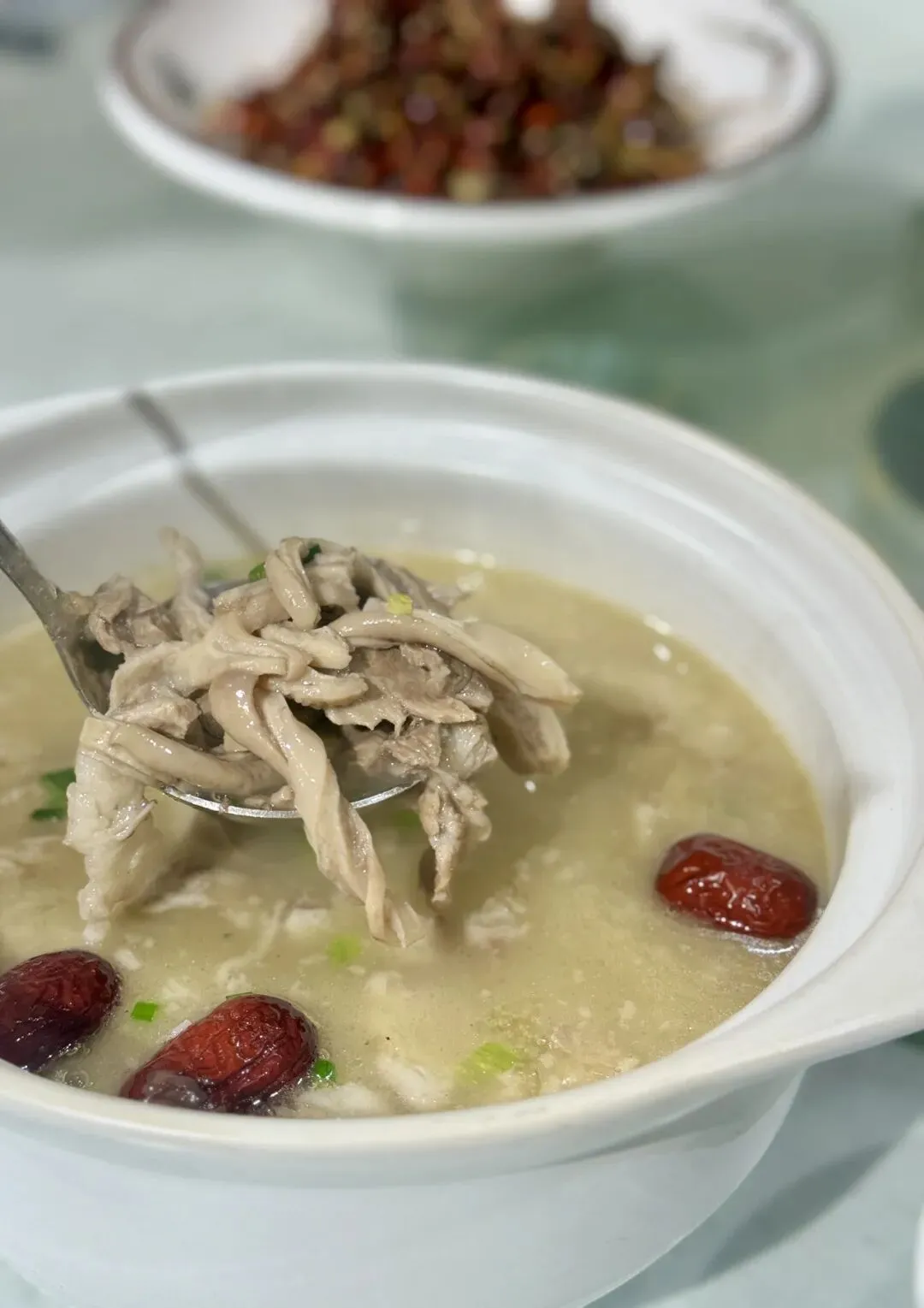 一道传统的家常菜,老板很舍得放料,里面的猪肚份量很足,墨鱼也不少,配上少许的花生和红枣,这是一罐浓郁鲜美的汤。吃了前两个辣味比较重的菜,在口腔发炸的时候,来上一碗这样鲜掉眉毛的汤,实在是种很爽的体验,何况价格还十分美丽,只要58元,那还说什么,必点。