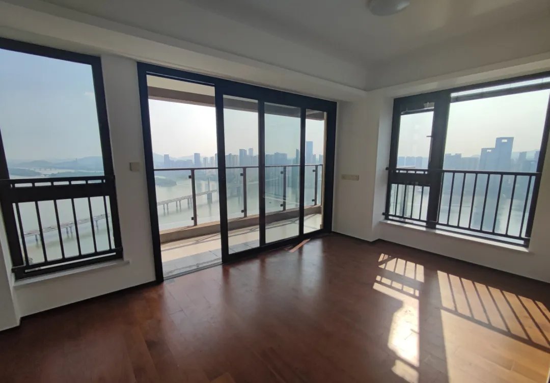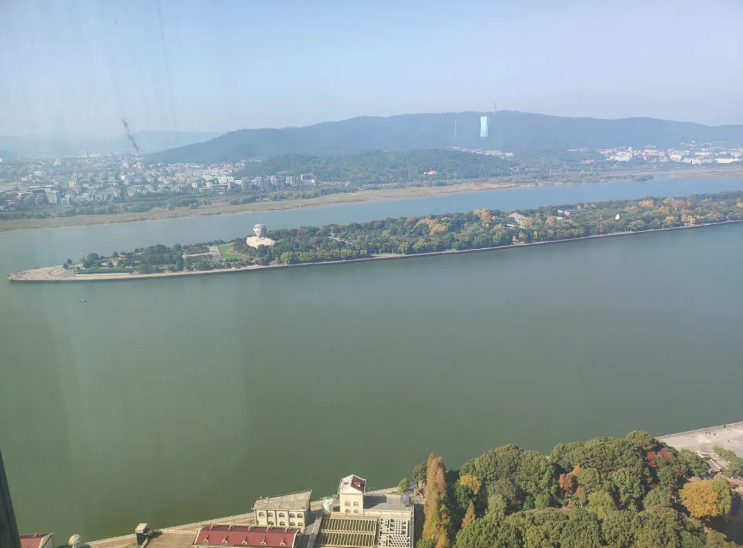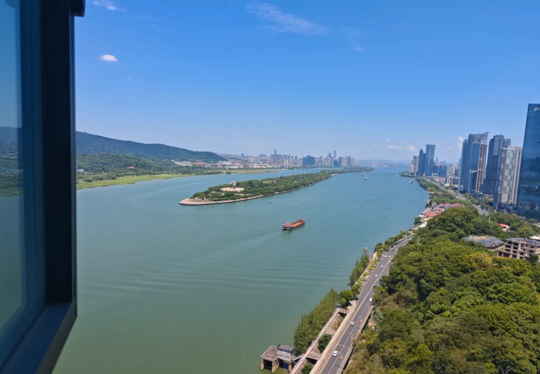 滨江府1913不仅一线江景、看橘子洲头,窗外某银行总部3个金元宝建筑,喻意财富与美好。高楼层还可以直接看到橘子洲头。