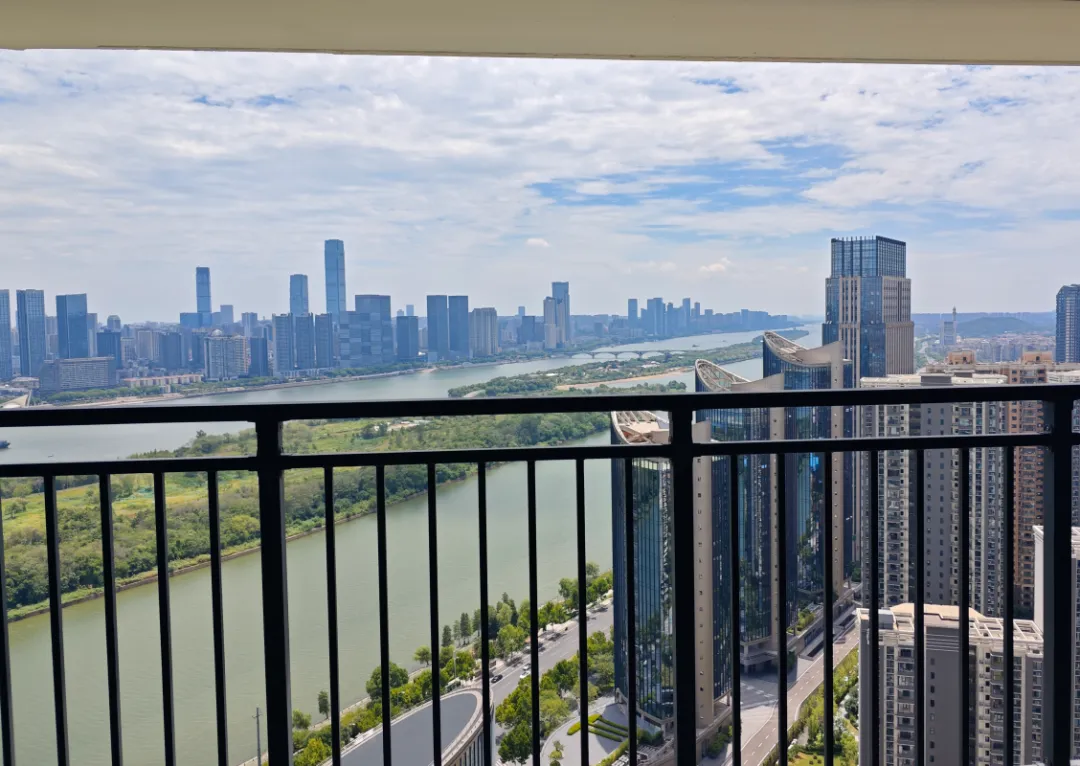 北辰三角洲.瀚江府,188平主卧转角阳台及窗户正对着金融心,晚上一线江景+金融中心灯景,美不胜收!