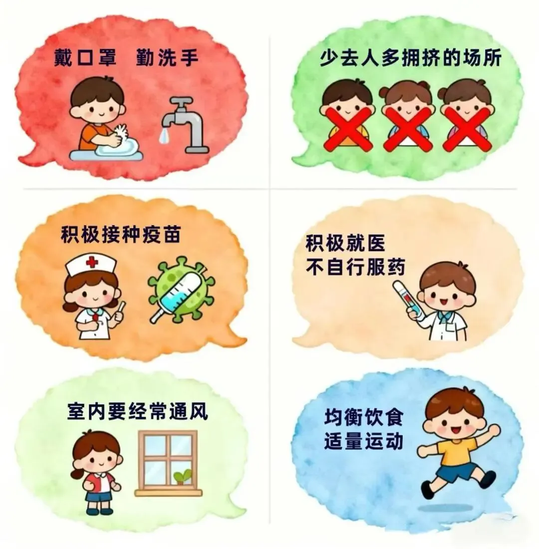 节日期间,尽量避免带领孩子前往人员密集、空气流通不畅的场所。冬季是上呼吸道传染病的高发时节,需切实做好勤洗手、常消毒、多通风、强锻炼等各项防护举措。