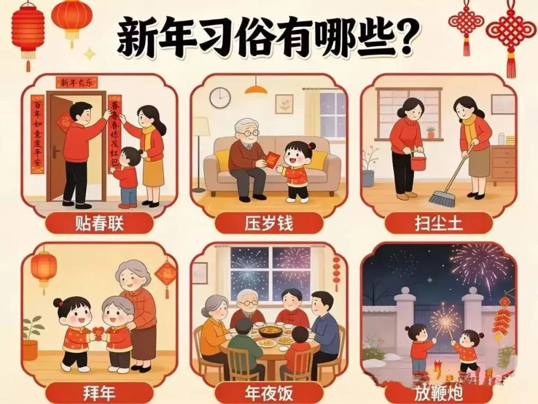 春节是孩子沉浸式体验传统文化的最佳课堂。从“扫尘”辞旧迎新的劳动,到“守岁”阖家团圆的情感;从张贴春联的字句格律,到祭祖祈福的虔敬之心,每一个环节都承载着深厚的文化密码。引导孩子亲身参与这些仪式,在体验中自然领悟团圆、孝亲、感恩与对美好生活的向往。
