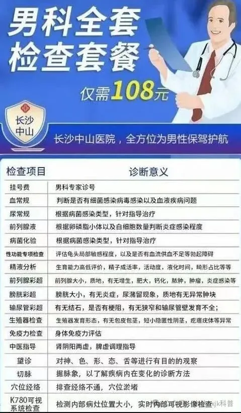 ✅ 前列腺疾病(前列腺炎/增生)✅ 性功能障碍(ED/早泄)✅ 泌尿系结石(肾/输尿管结石)✅ 泌尿系感染(尿道炎/膀胱炎)✅ 男性不育(少弱精症等)