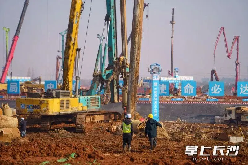 近日,记者在长沙奥体中心建设现场看到,百余台“钢铁巨人”忙而有序地推进着桩基工程,上千名建设者奋战在施工一线,为这座未来的“体育强省新地标”筑牢根基。从高空俯瞰,主体育场的圆形地基已初具雏形。