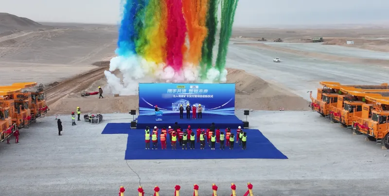 中联重科无人矿卡交付活动现场。随着矿山行业智能化加速演进、“人工智能+矿业”深度融合,无人矿卡作为人工智能与矿业融合的核心装备,已成为提升新质生产力的关键装备。行业对矿卡设备的高效稳定运行、可控及安全性能提出更严苛的要求。中联重科依托强大的研发及智造实力、领先的矿山高端装备,全力打造现代化绿色智慧矿山样板。