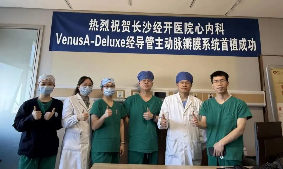 在心脏介入领域的巅峰挑战中,有这样一类手术:它要求医生在宛如发丝的血管中穿行,在跳动的心脏内进行毫米级的精准操作,而患者心脏自身的特殊结构,更是将每一步都置于风险之上,值得庆幸的是长沙经开医院心血管科黄浪静教授团队就成功挑战了这样一个"手术禁区"。近日,长沙经开医院在国内知名心血管专家余再新院长的主持下,心血管科黄浪静主任带领团队,在超声、麻醉、放射、护理等多学科团队的通力协作下成功应用VenusA-Deluxe为一位高龄高危、解剖结构复杂的风湿性心脏瓣膜病患者完成了一例高难度经导管主动脉瓣置换术(TAVR)。手术过程惊心动魄,团队凭借精湛技术与默契配合,成功化解术中突发循环崩溃的危急情况,最终使患者转危为安,取得圆满成功。这不仅彰显了长沙经开医院心内科团队在复杂心脏介入领域过硬的技术实力与应急处理能力,也标志着其在结构性心脏病微创介入治疗领域达到了新的高度。