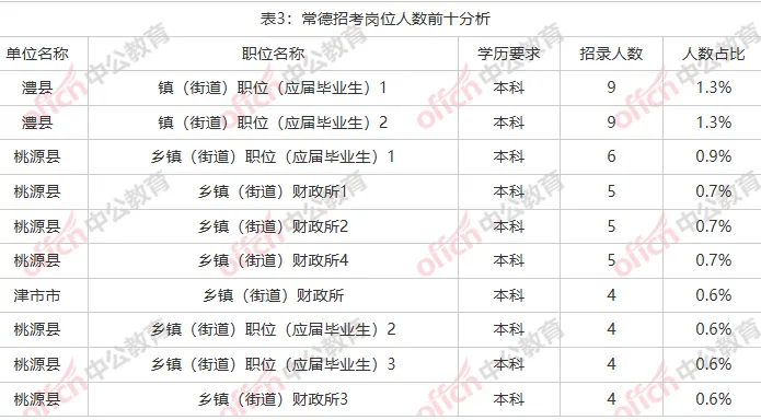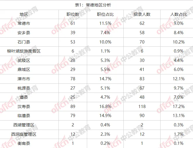 汉寿县、临澧县、津市市地区招考占常德招录人数的42.4%。