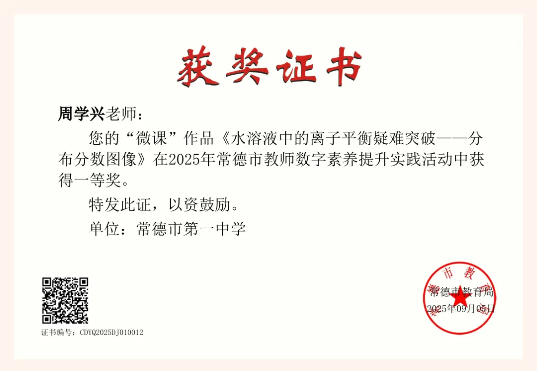 10月20日,陈耀龙老师主持的湖南省基础教育教学改革研究项目《AI赋能下的高中物理学科核心素养提升策略研究》开题,戴立辉、周学兴老师主持的常德市教育科学规划课题《高中化学实验教学中科学探究与创新意识的培养研究》结题。