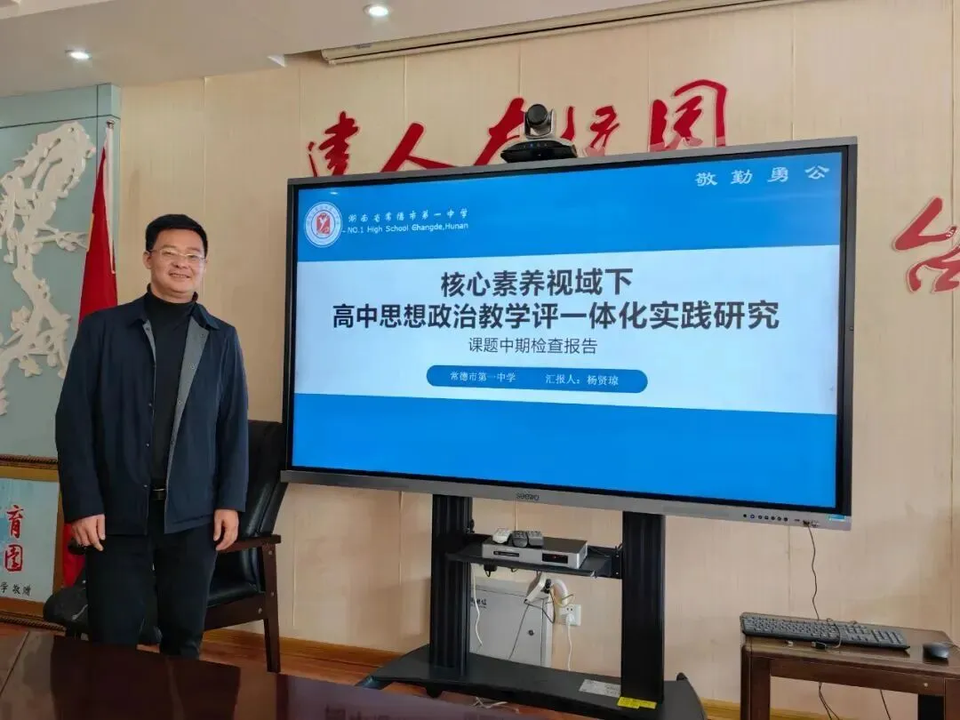 由常德市一中党委委员、副校长,常德市骨干教师杨贤琼主持的湖南省教育科学“十四五”规划一般资助课题《核心素养视域下高中思想政治教学评一体化实践研究》顺利通过中期检查,课题成果获专家组高度肯定。