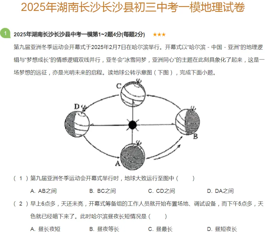 2019-2025年长沙各区初三中考一模地理试卷及答案解析.pdf