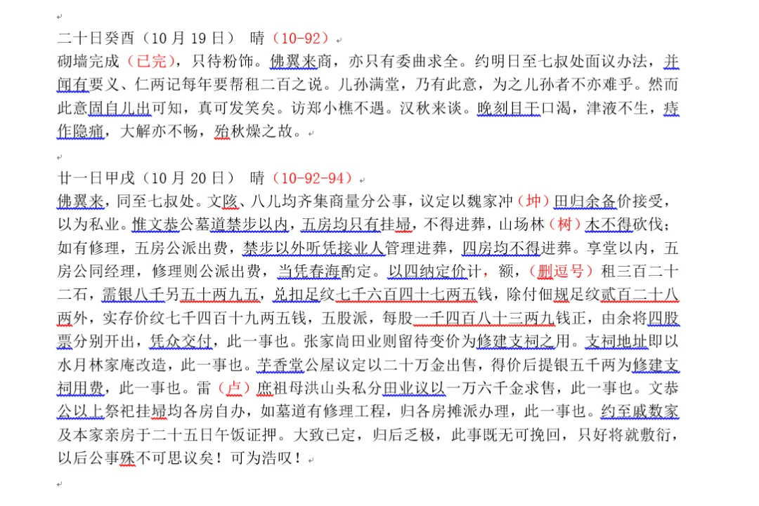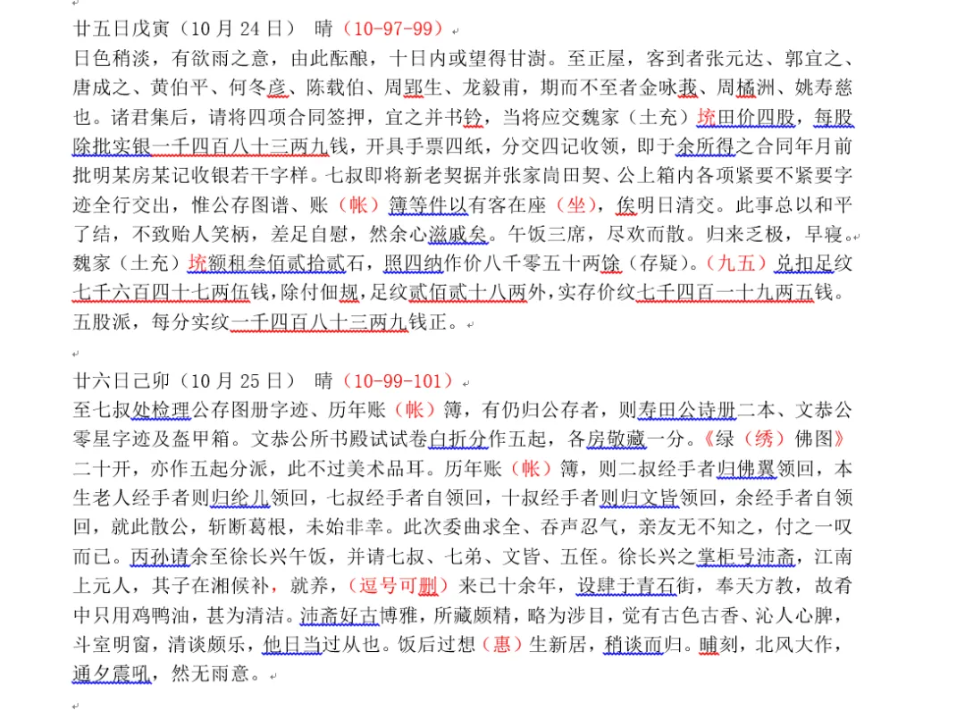 再附带说一下,字形问题,当可别作讨论,但所谓“账帐 座坐相通”,散人并不认可,毕竟,这是在整理前人日记,不是在编小学教材。