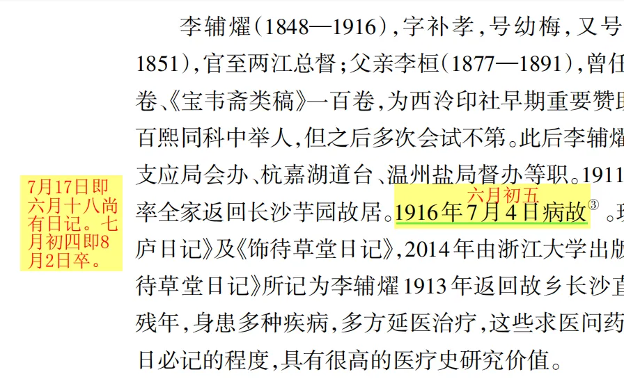 《李辅燿长沙日记》,或许在书中已经得到改正。手头有此书的朋友,能否赐告有改动否呢?