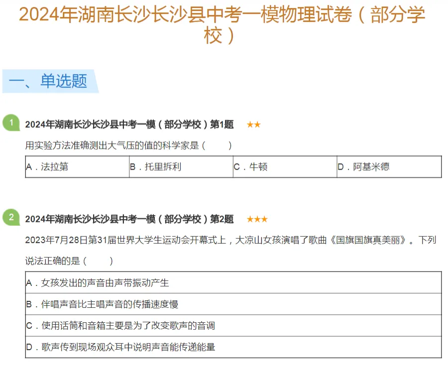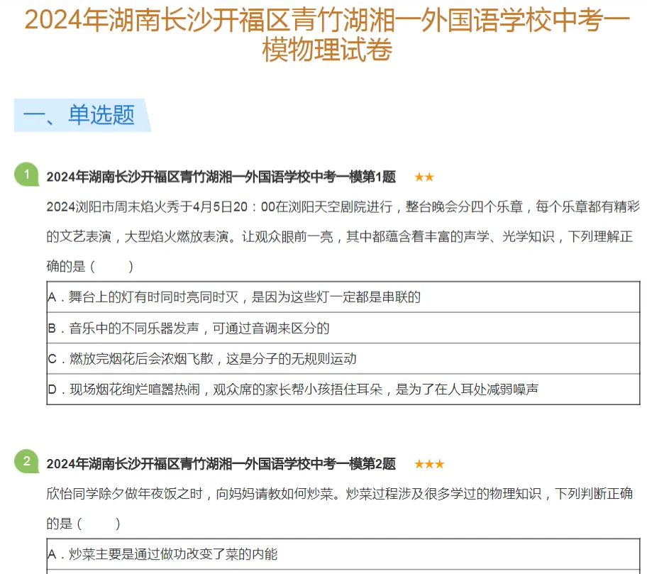 2018-2024年长沙各区初三中考一模物理试卷及答案解析.pdf