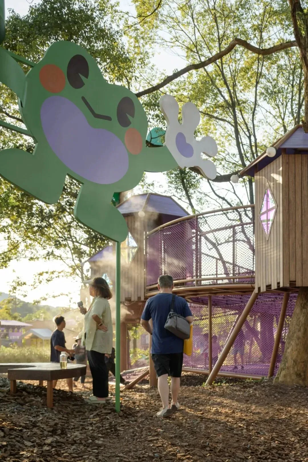 而树蛙部落的住宿直接拉满质感,全是孩子们一眼就心动的特色树屋,仿佛闯进宫崎骏的童话世界,野奢氛围与童趣感双双拉满。
