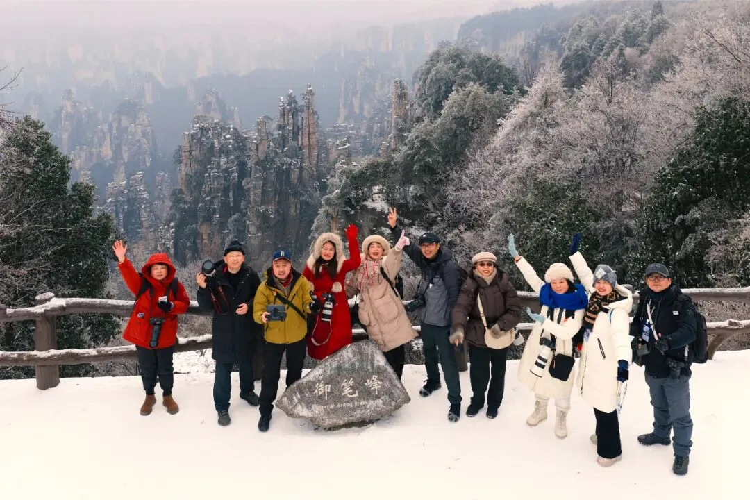 2026年的元月二十一日,听闻天子山上已是漫天大雪,玉裹冰凝,长沙市摄影家协会光线摄影创作组迅速组成九人的采风小分队,应第八届航拍武陵源创新大赛之邀请,走进雪中的张家界。